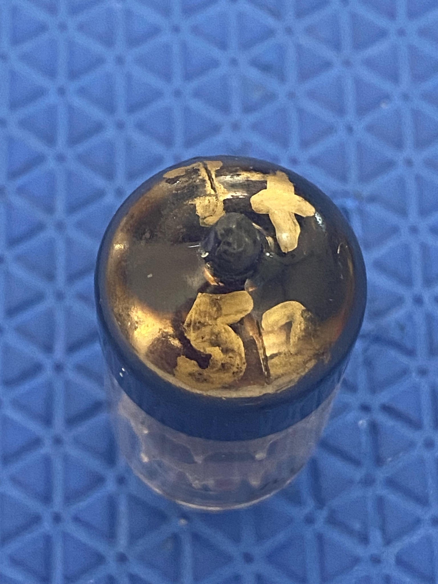 Its silkscreening is excellent and it has 7L1 R3C4 provenance codes; a riveted disk getter; 7314 KB/D date / batch codes and sutured tops.