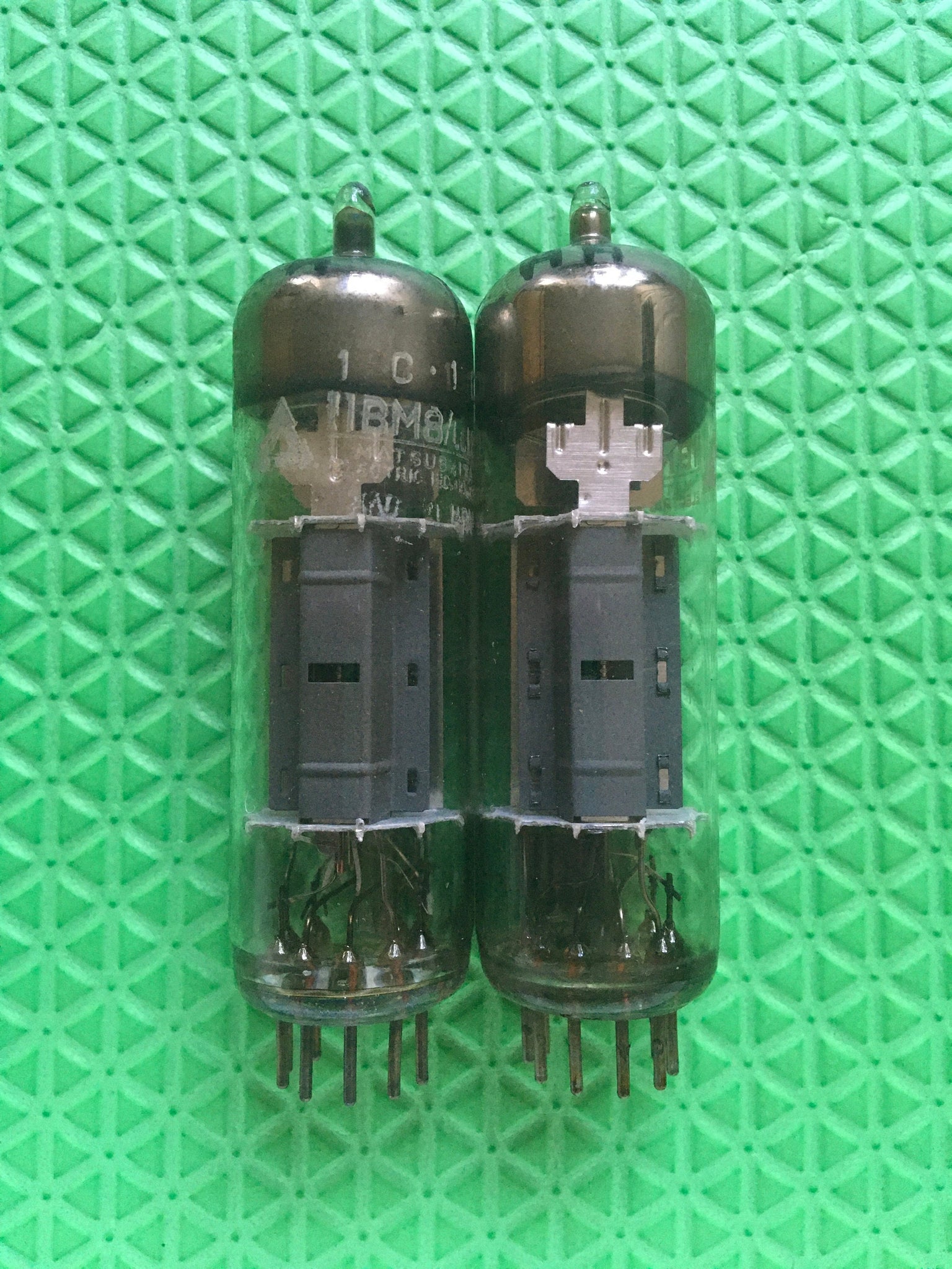 This matched pair of Matsushita 11BM8 / LCL82 / 12DZ8 triode/pentodes was tested on our Paul Hart-calibrated TV7 for shorts, gas and transconductance. There were no shorts or gas.