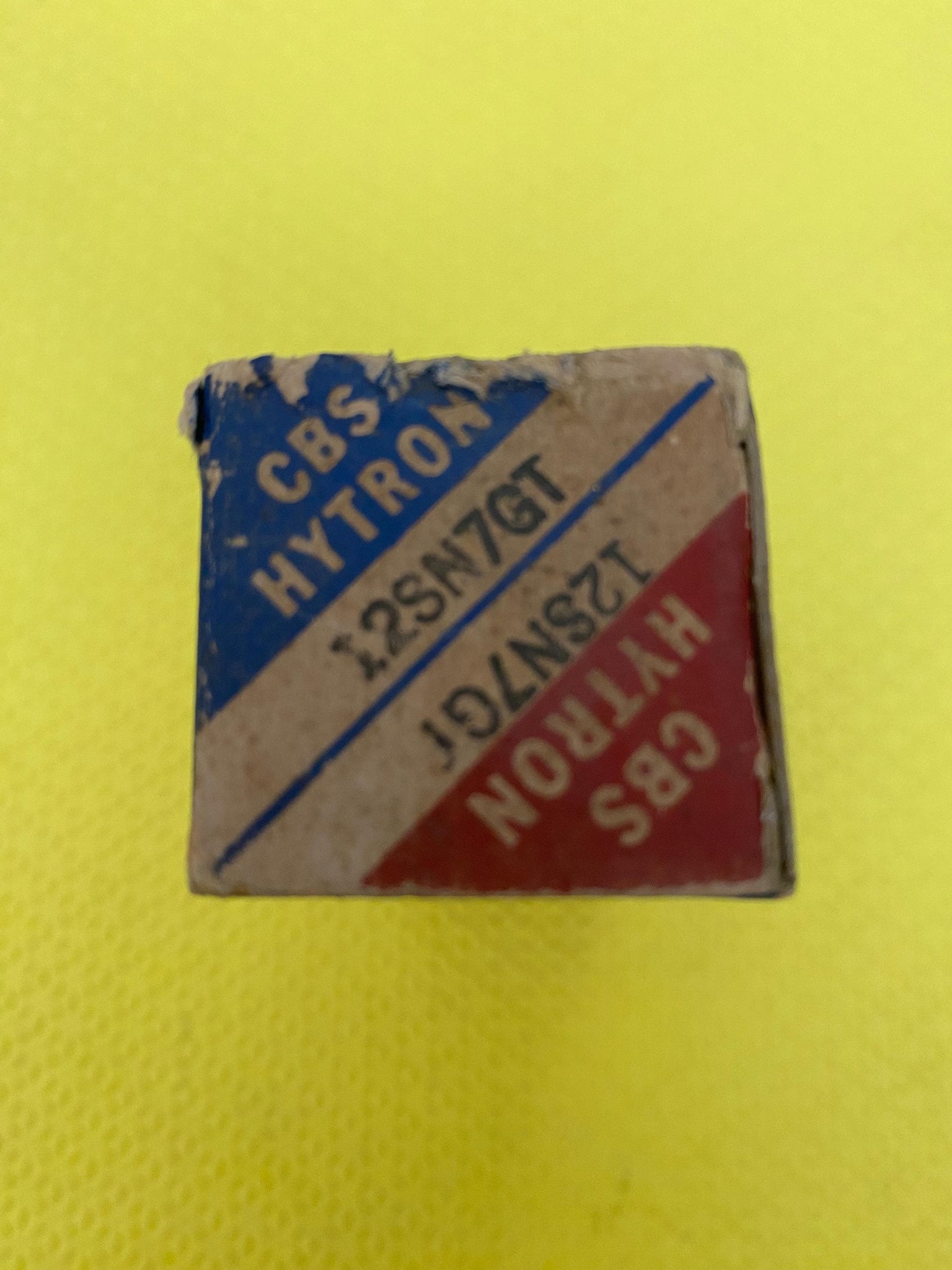 This new old stock, new in box (for Tube One) matched pair of CBS-Hytron-MANUFACTURED 12SN7GT dual triodes was tested on our Paul Hart-calibrated TV7/U for shorts, gas and transconductance. There were no shorts or gas.