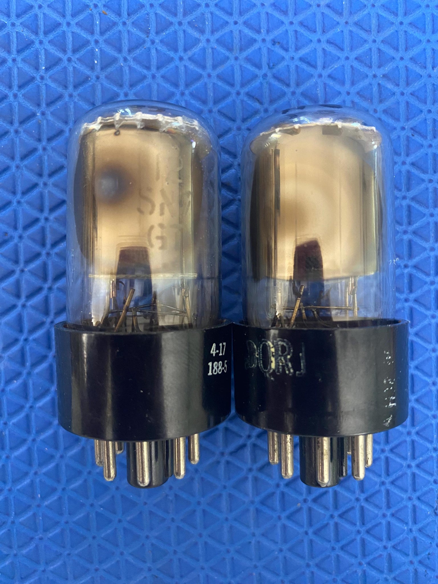 They have copper support rods; 4-17 188-5 and 2-48 188-5 date/provenance codes, respectively; side, horseshoe getters and excellent flashing.