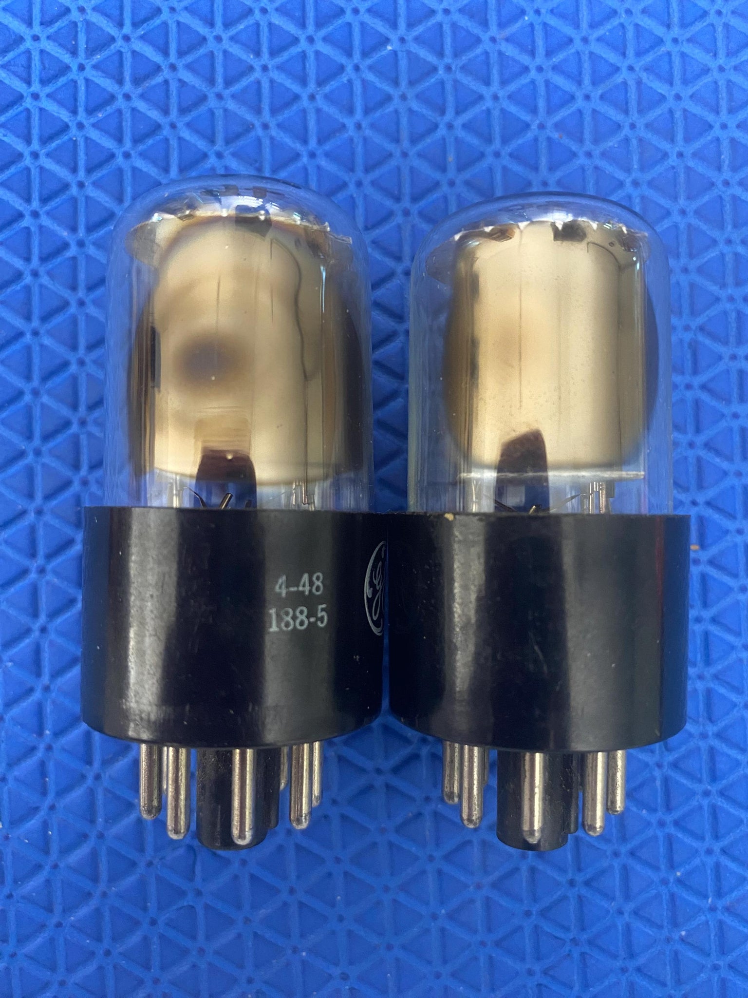 They have 4-48 188-5 and 4-43 188-5 date/factory codes; copper support rods, horseshoe getters and excellent flashing.