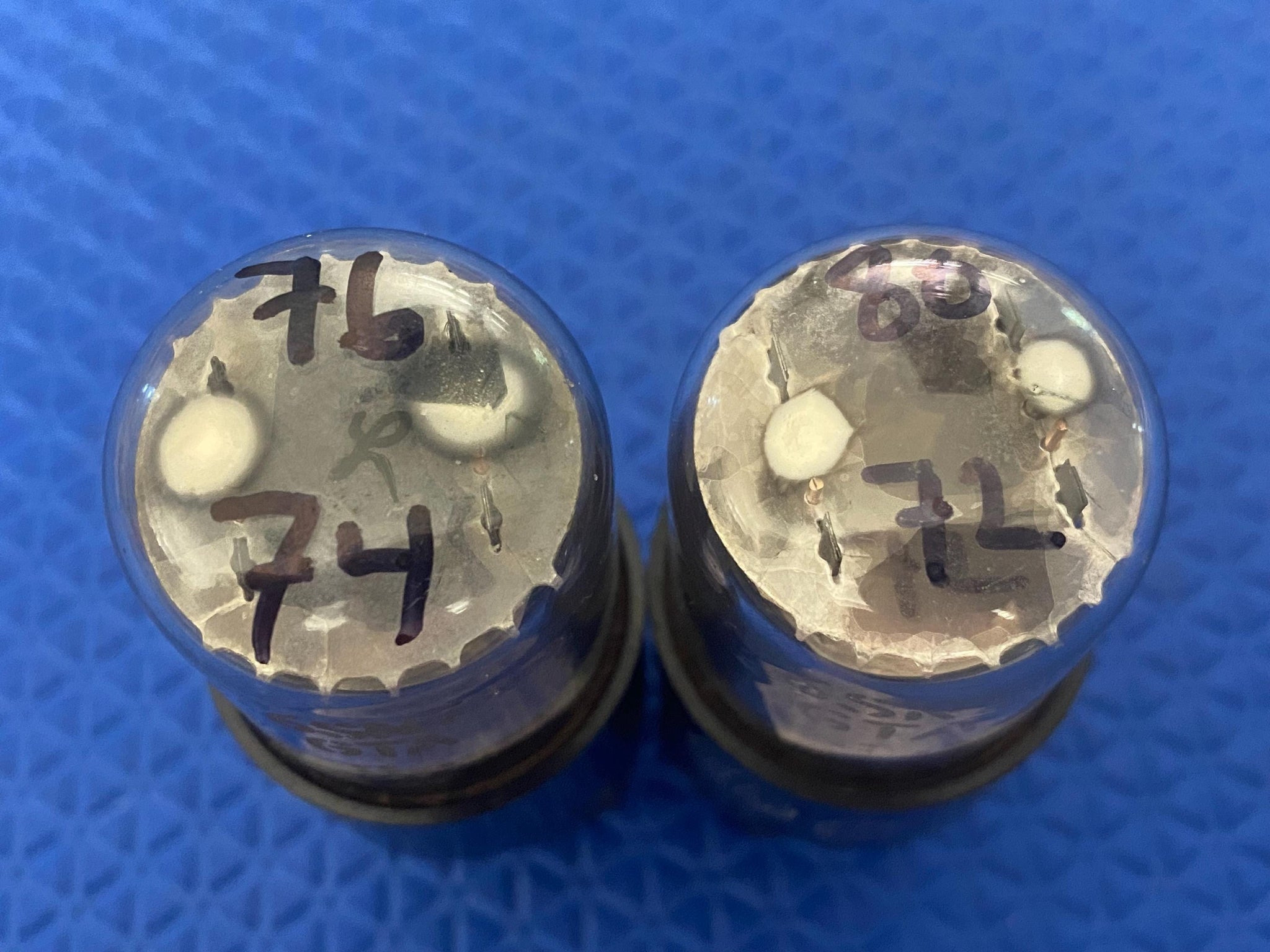 Transconductance measured 76/74 for Tube One and 80/72 for Tube Two where minimum (65%) is 50/50 and 100% is 77/77.