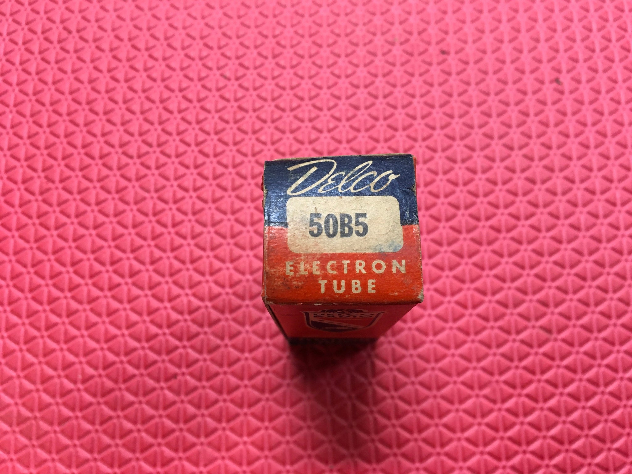 This new old stock, new in box GM Delco 50B5 tube tested to spec on our Paul Hart-calibrated TV7/U.