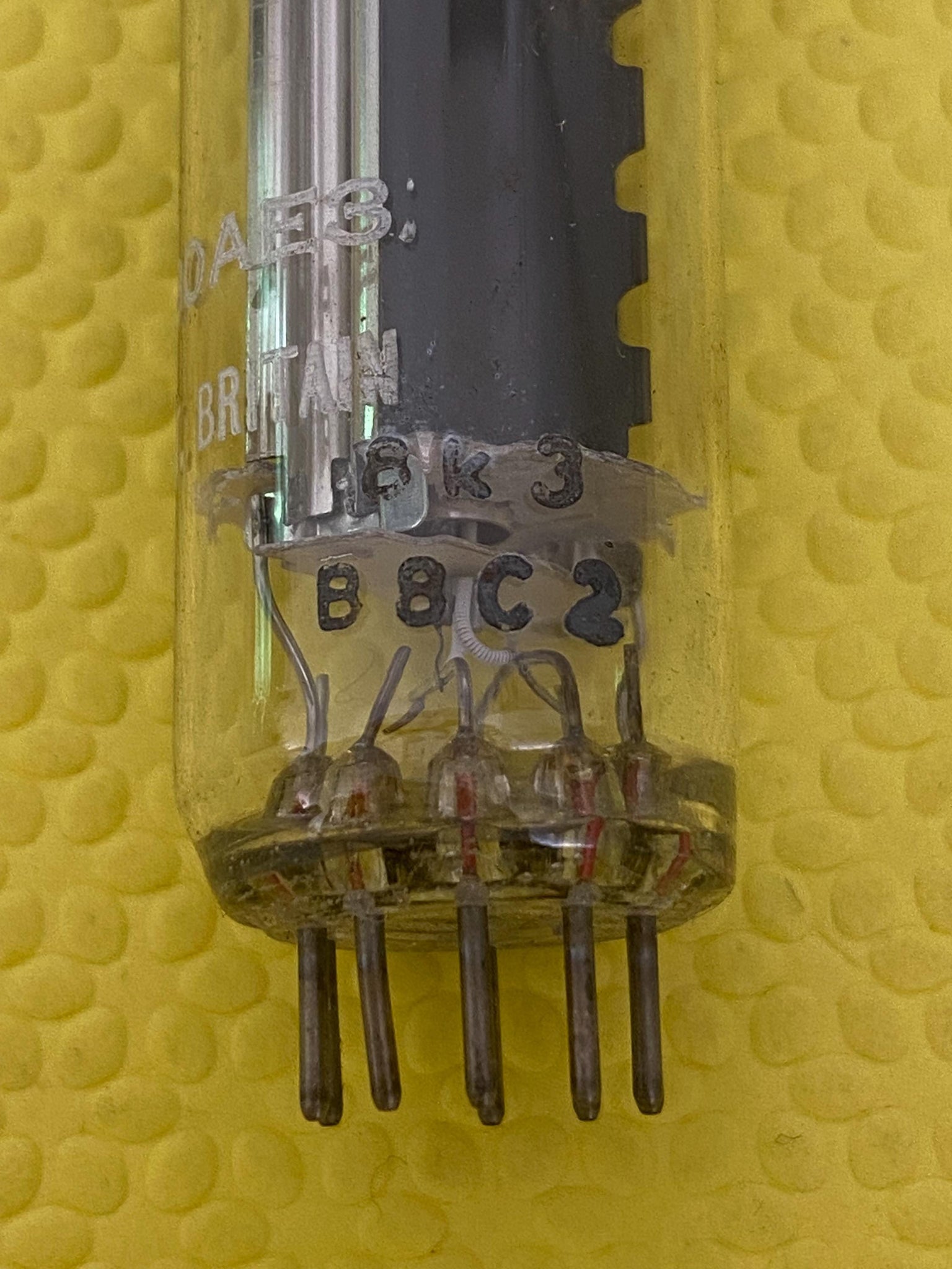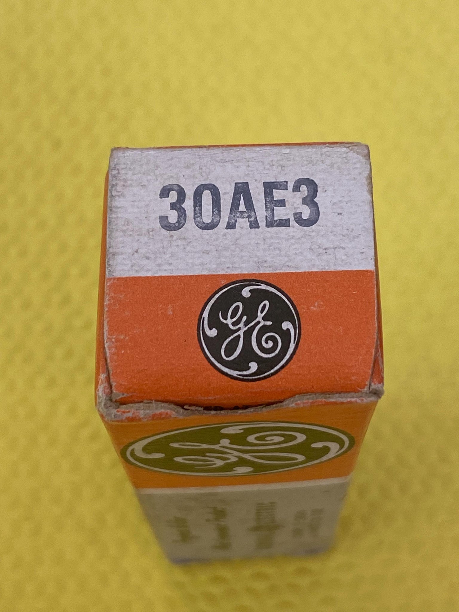 This new old stock, new in box Mullard-MANUFACTURED, GE-LABELED 30AE3 / PY88 tested to spec on our Paul Hart-calibrated TV7/U.