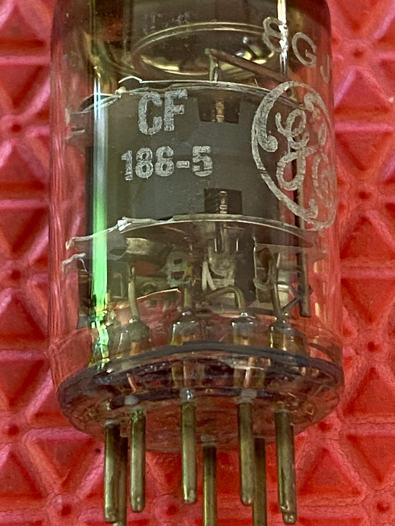 This new old stock, new in box Mullard-MANUFACTURED, GE-LABELED 8GJ7 PCF801 tube tested to spec on our Paul Hart-calibrated TV7/U.