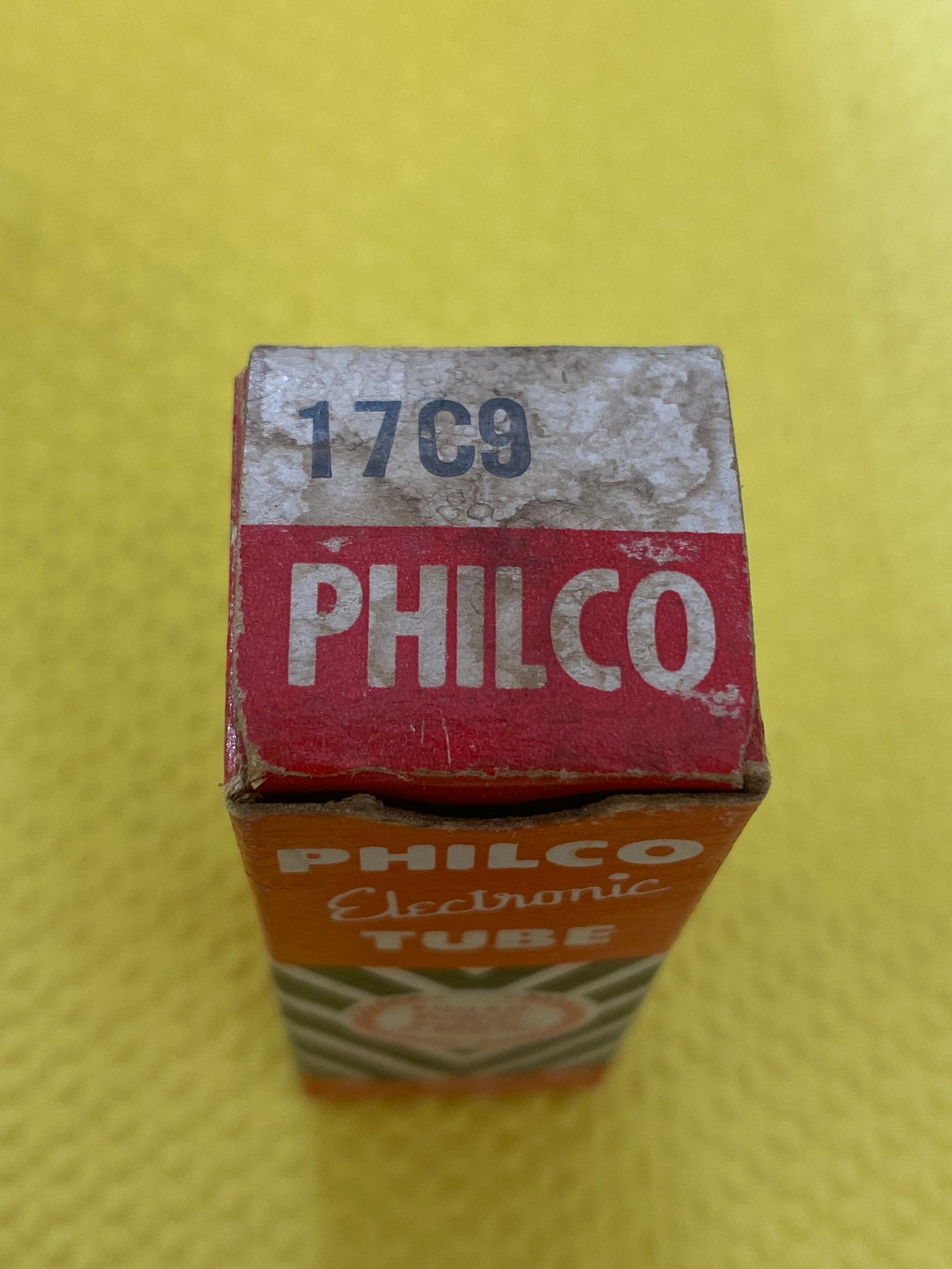 This new old stock, new in box Philco 17C9 tube tested to spec on our Paul Hart-calibrated TV7/U.