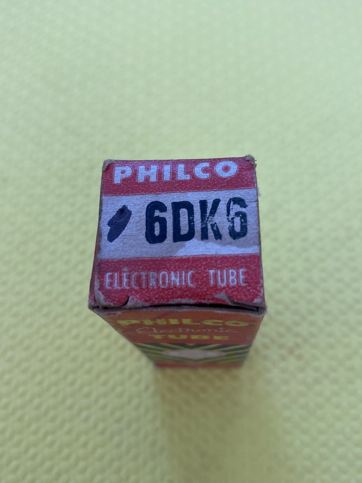 This new old stock, new in box Philco 6DK6 tube tested to spec on our Paul Hart-calibrated TV7/U.