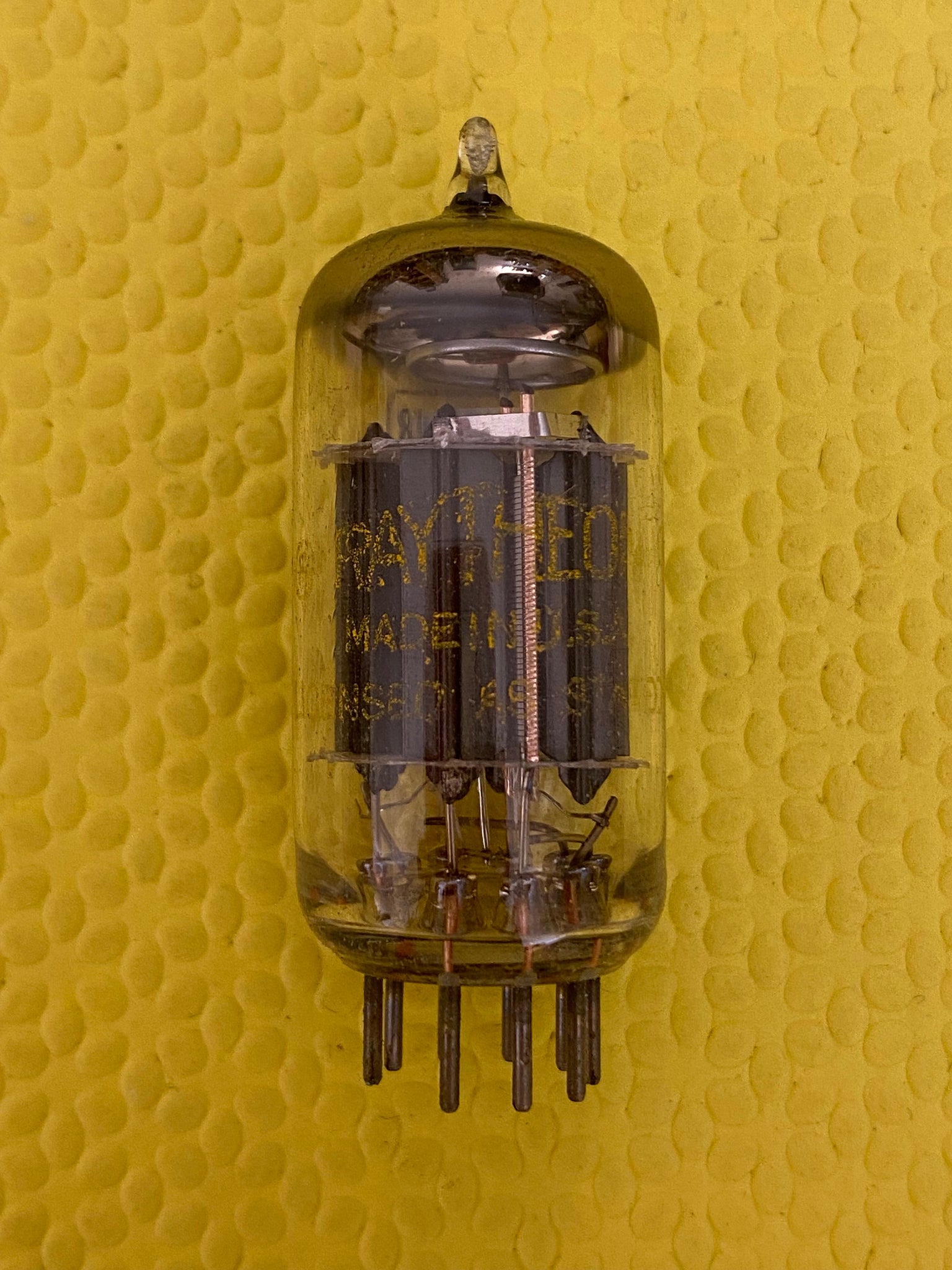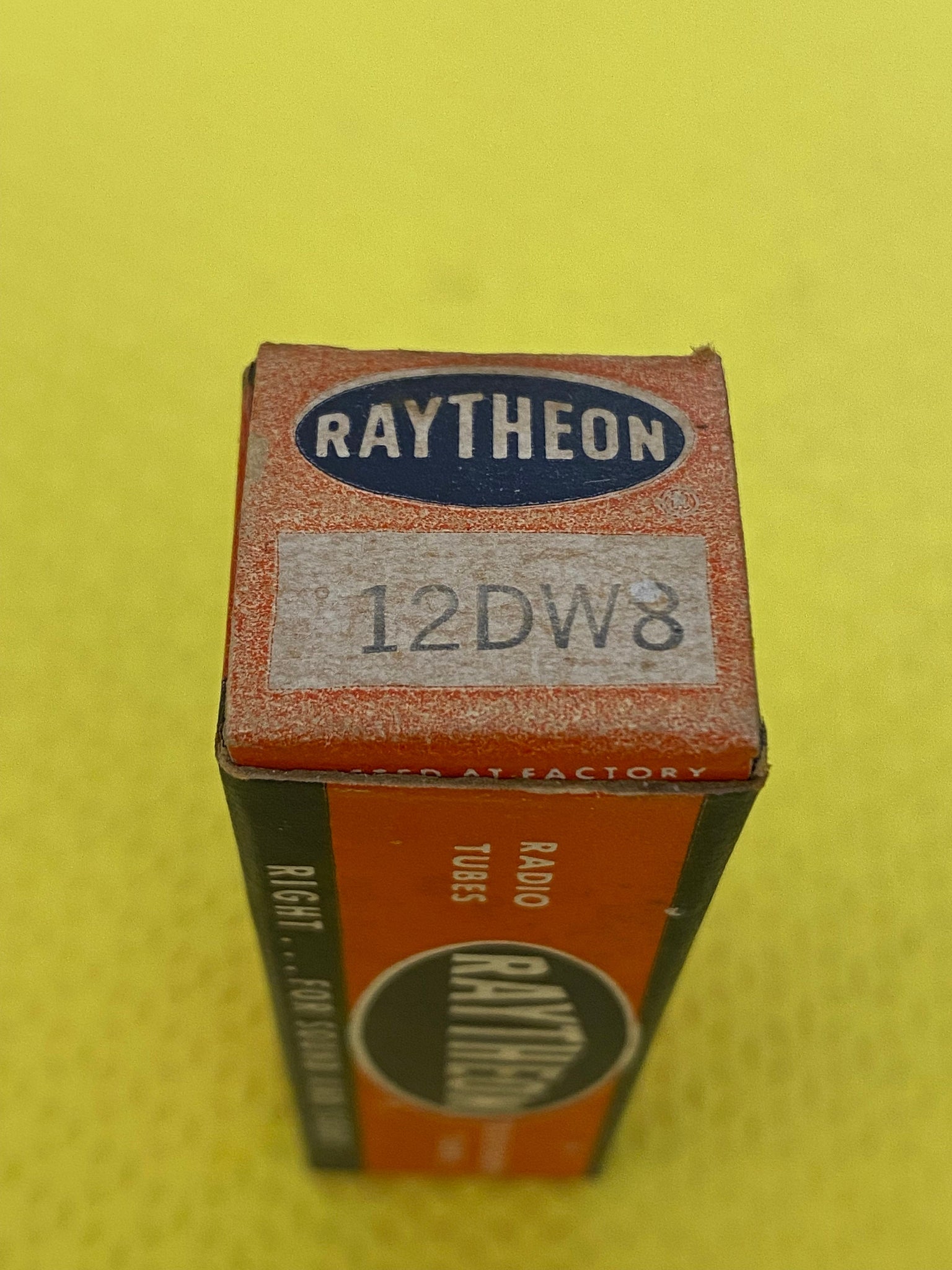 This new old stock, new in box Raytheon 12DW8 tube tested to spec on our Paul Hart-calibrated TV7/U.