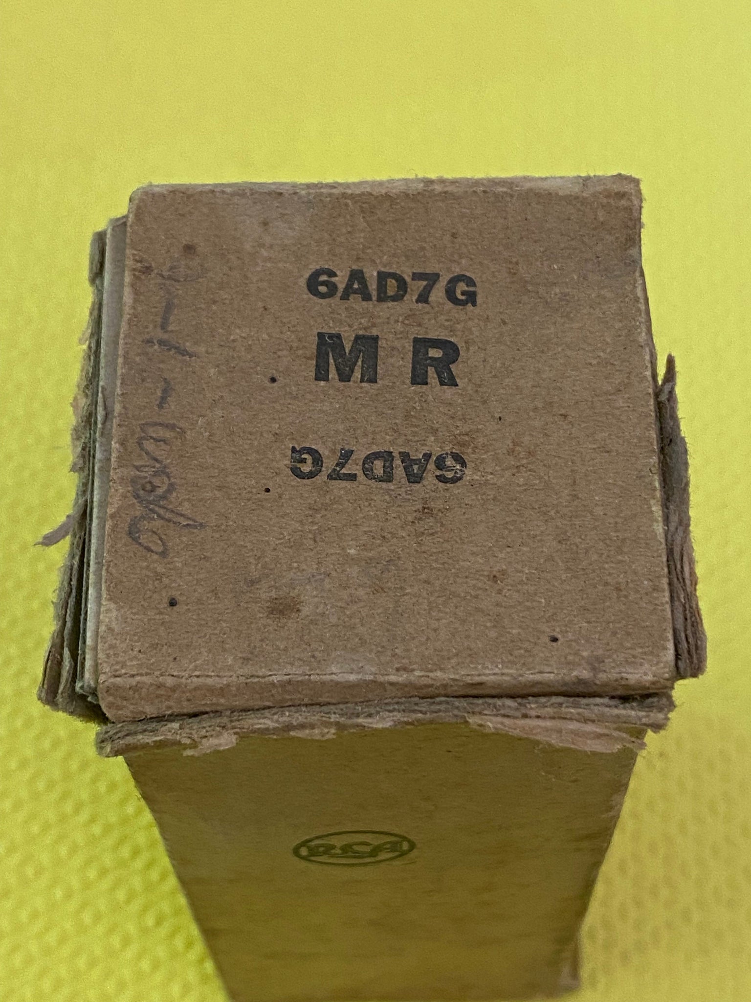 This new old stock, new in box RCA 6AD7G tube tested to spec on our Paul Hart-calibrated TV7/U.
