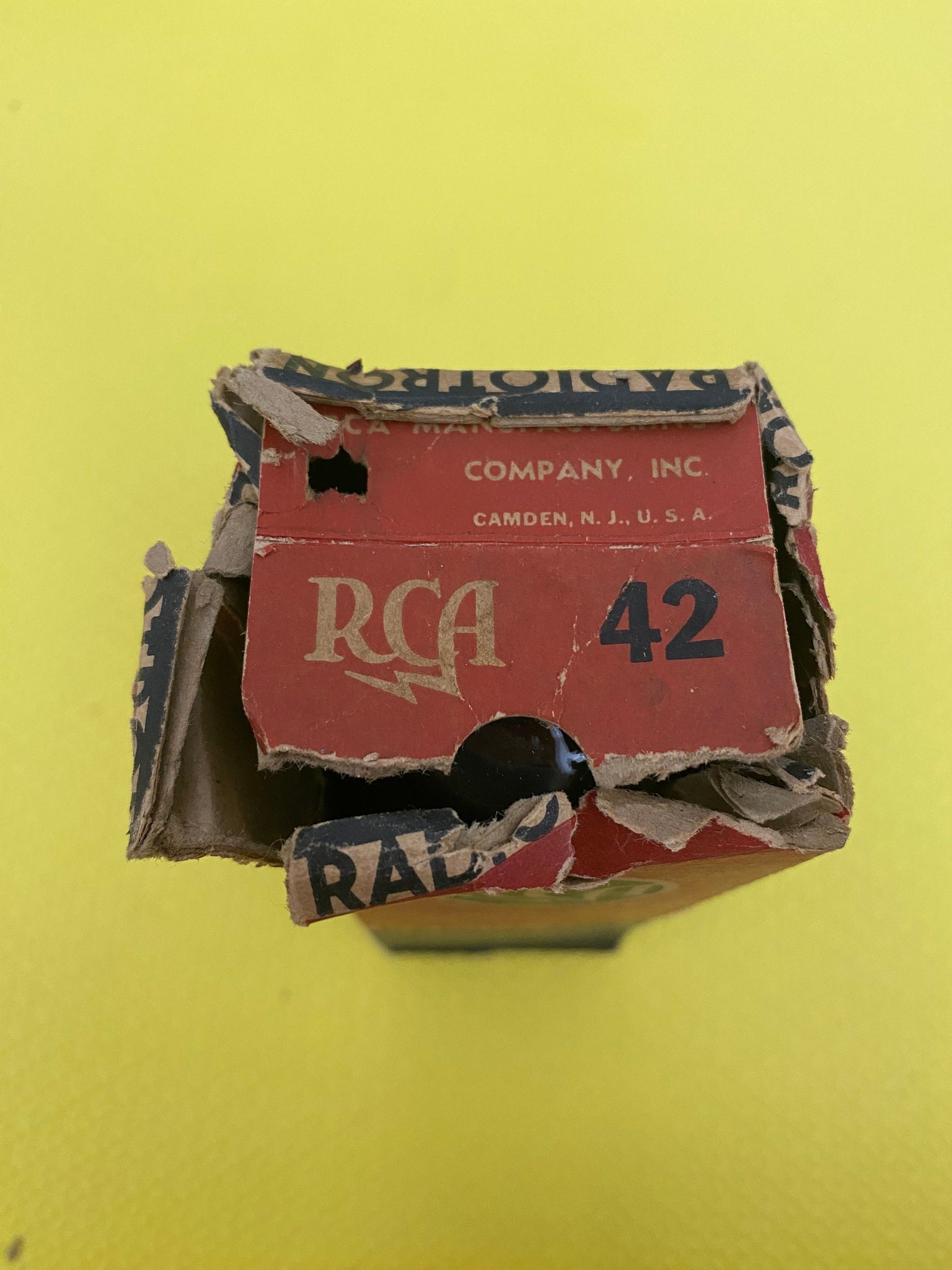 This new old stock, new in box RCA type 42 tube tested to spec on our Paul Hart-calibrated TV7/U.