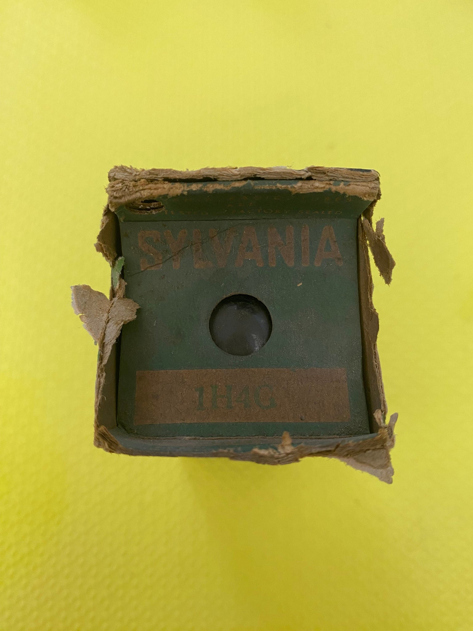 This new old stock, new in box Sylvania 1H4G tube tested to spec on our Paul Hart-calibrated TV7/U.