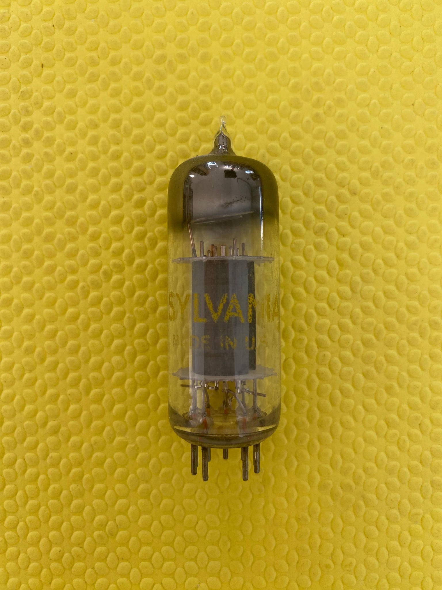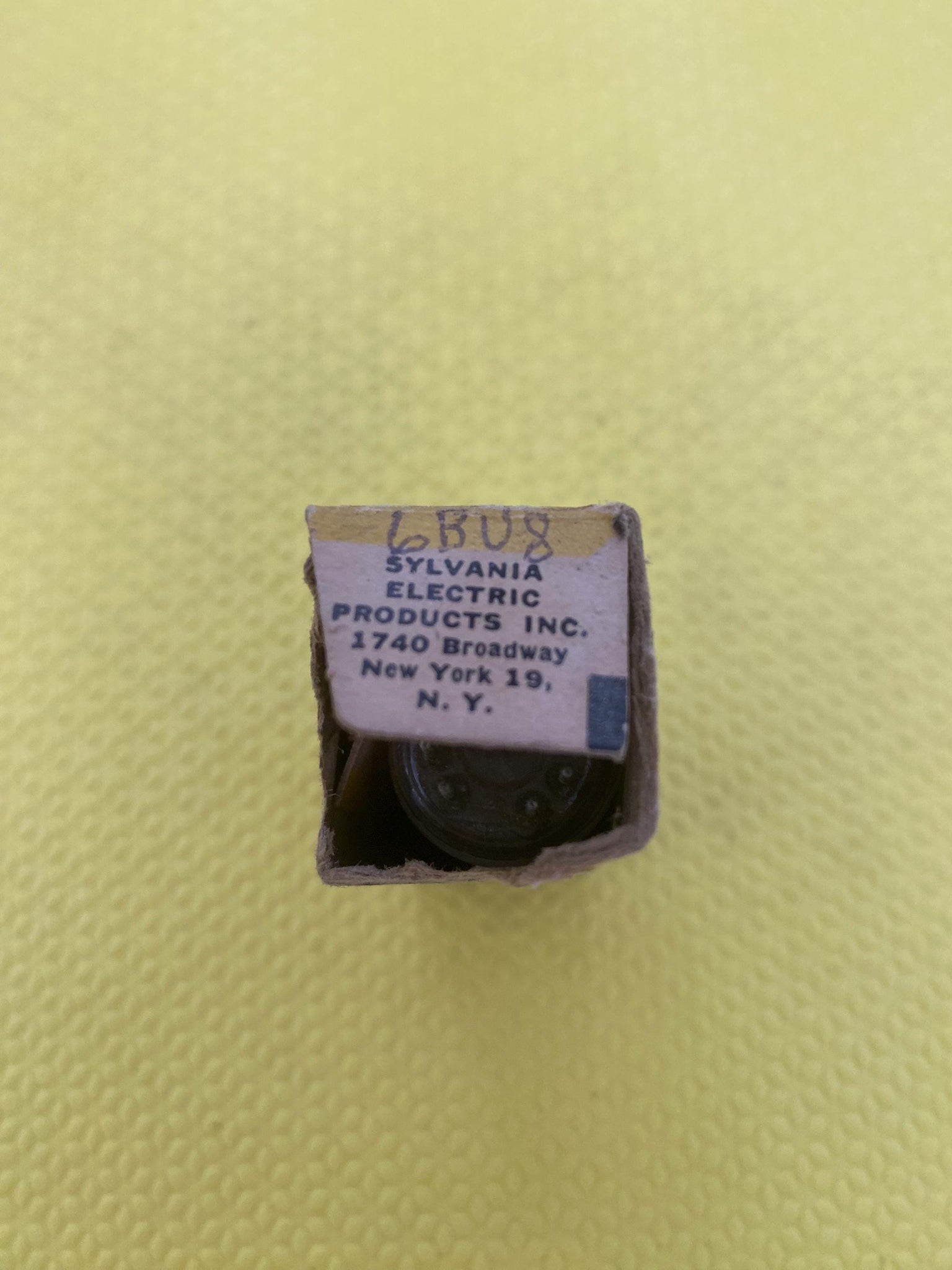 This new old stock, new in box Sylvania 6BU8 tube tested to spec on our Paul Hart-calibrated TV7/U.