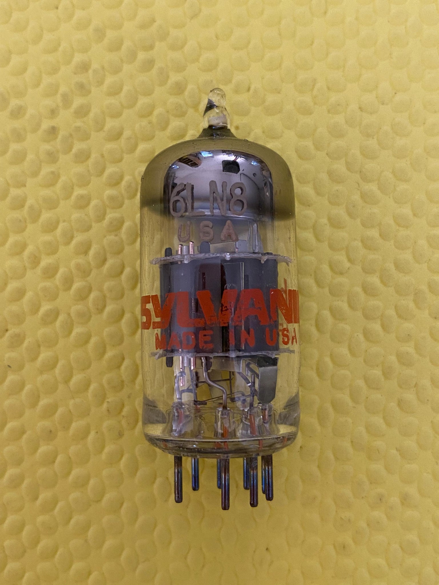 This new old stock, new in box Sylvania 6LN8 tube tested to spec on our Paul Hart-calibrated TV7/U.