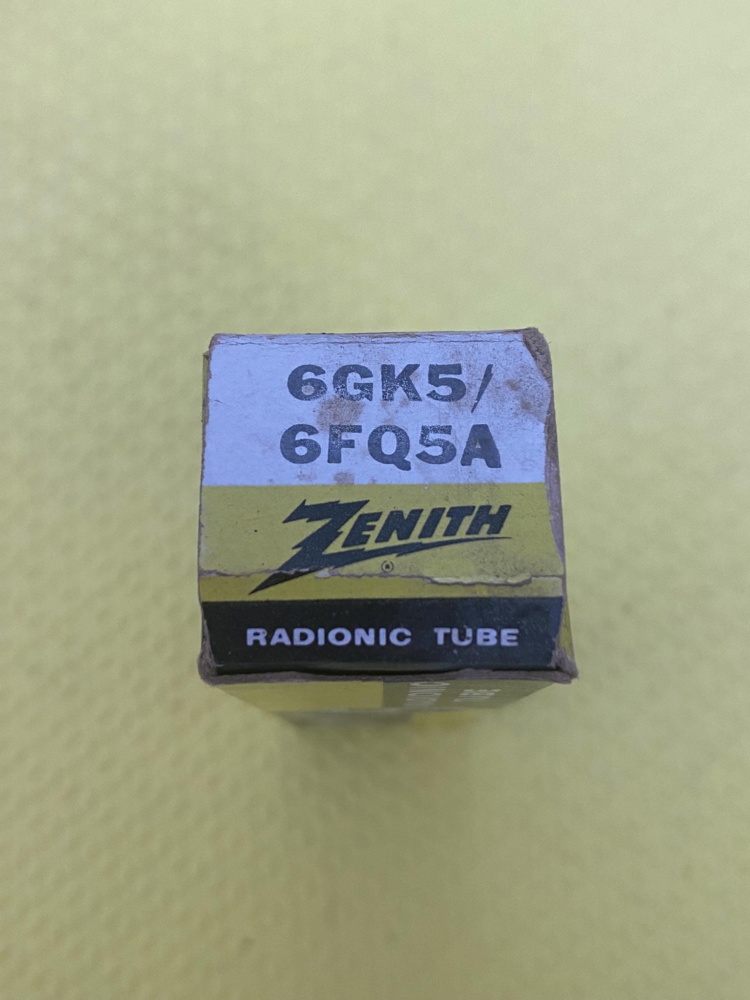 This new old stock, new in box Zenith 6GK5 / 6FQ5A tube tested to spec on our Paul Hart-calibrated TV7/U.