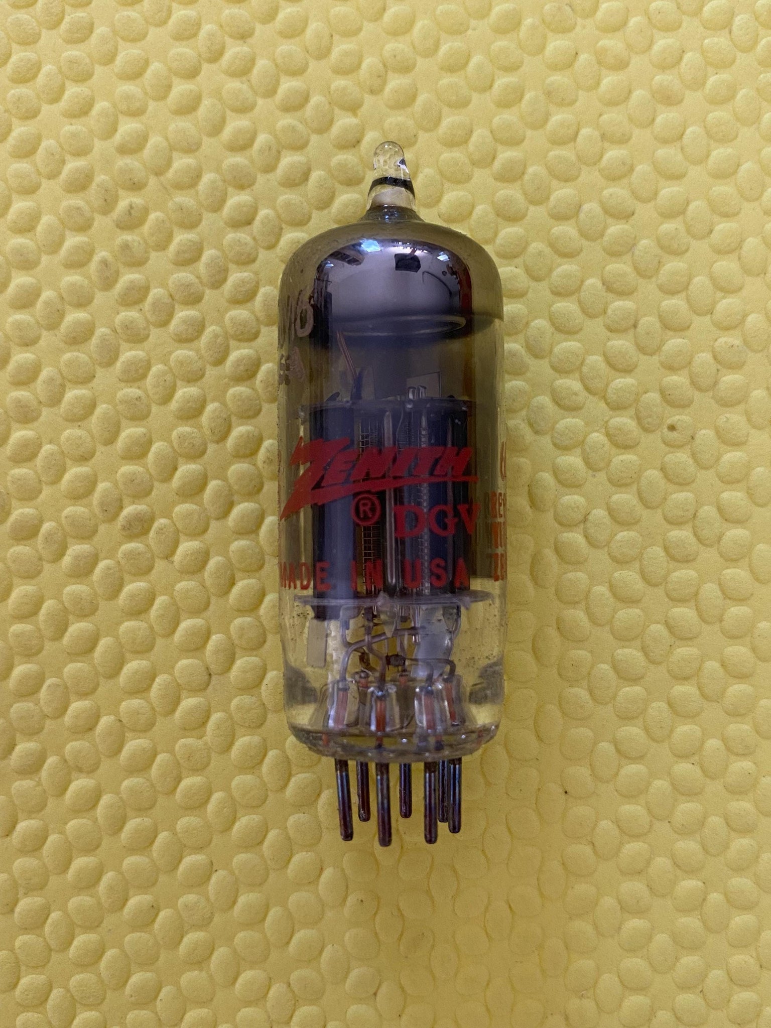This new old stock, new in box Zenith 6GM6 tube tested to spec on our Paul Hart-calibrated TV7/U.
