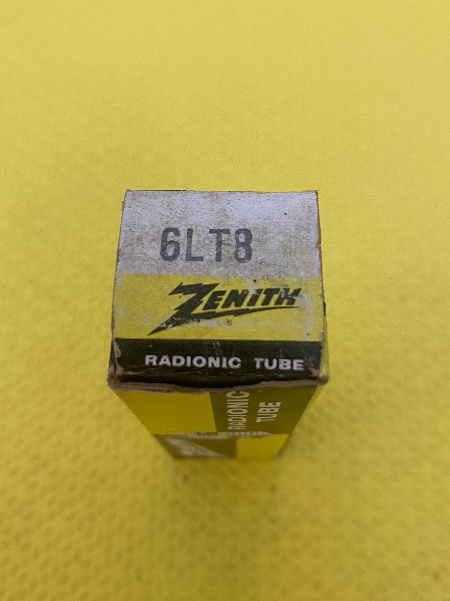 This new old stock, new in box Zenith 6LT8 tube tested to spec on our Paul Hart-calibrated TV7/U.
