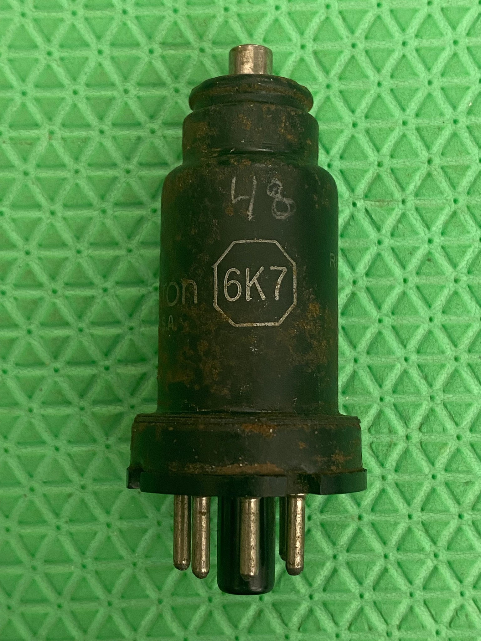 This RCA 6K7 tube was tested on our Paul Hart-calibrated TV7/U for shorts, gas and transconductance. There were no shorts or gas.