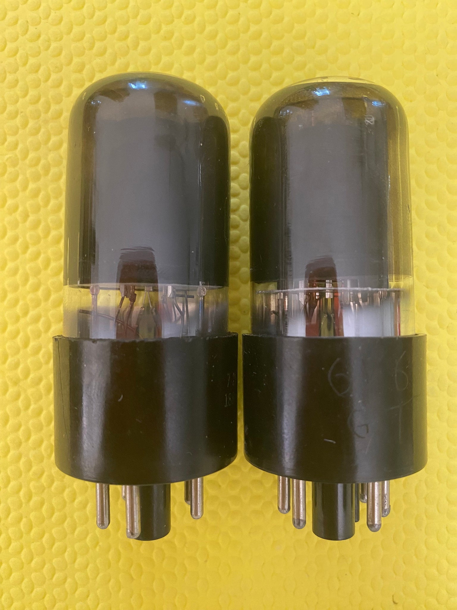 This matched pair of Ken-Rad 6V6GT output tubes was tested on our Maxi-Matcher 2 for shorts, gas and transconductance. There were no shorts or gas.