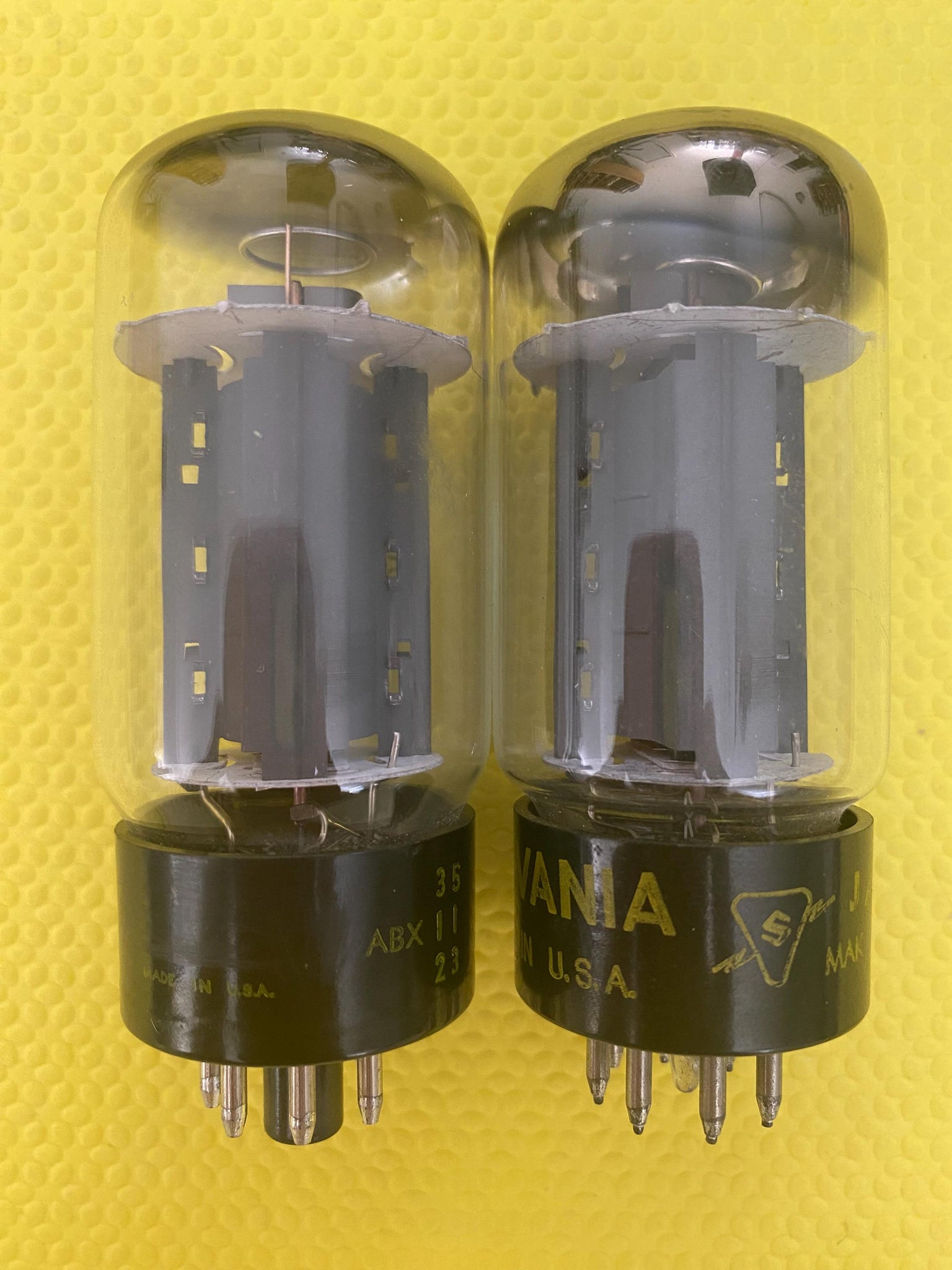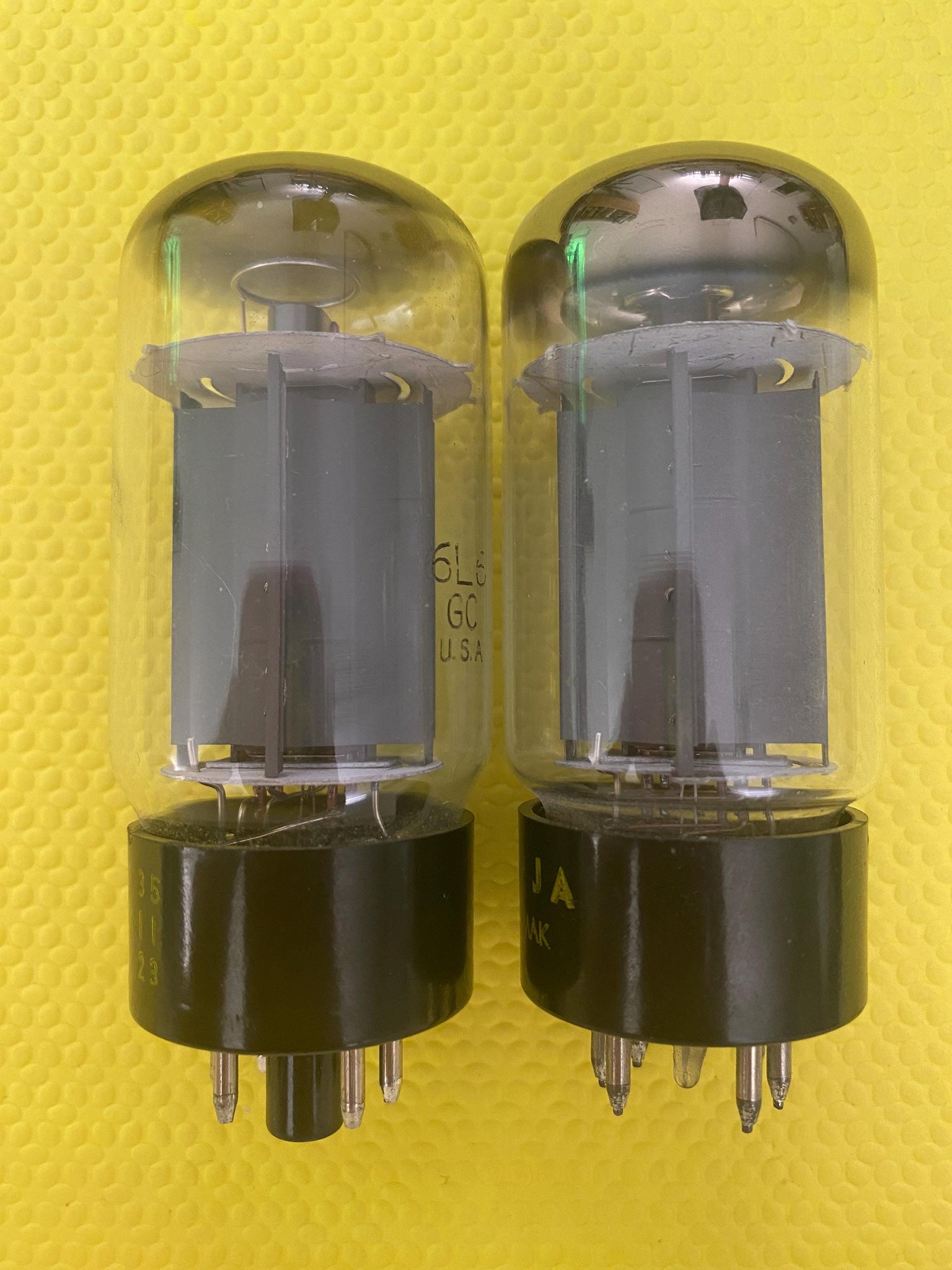 This new old stock-testing matched pair of Sylvania 6L6GC output tubes was tested on our Maxi-Matcher 2 for shorts, gas and transconductance with 400 volts on the plates and a bias of -48 volts. There were no shorts or gas.