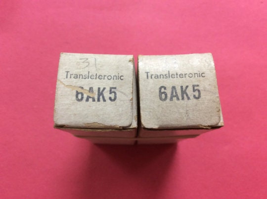 This new old stock, new in box matched pair of Transleteronic 6AK5 tubes was tested on our Paul Hart-calibrated TV7/U for shorts, gas and transconductance. There were no shorts or gas.