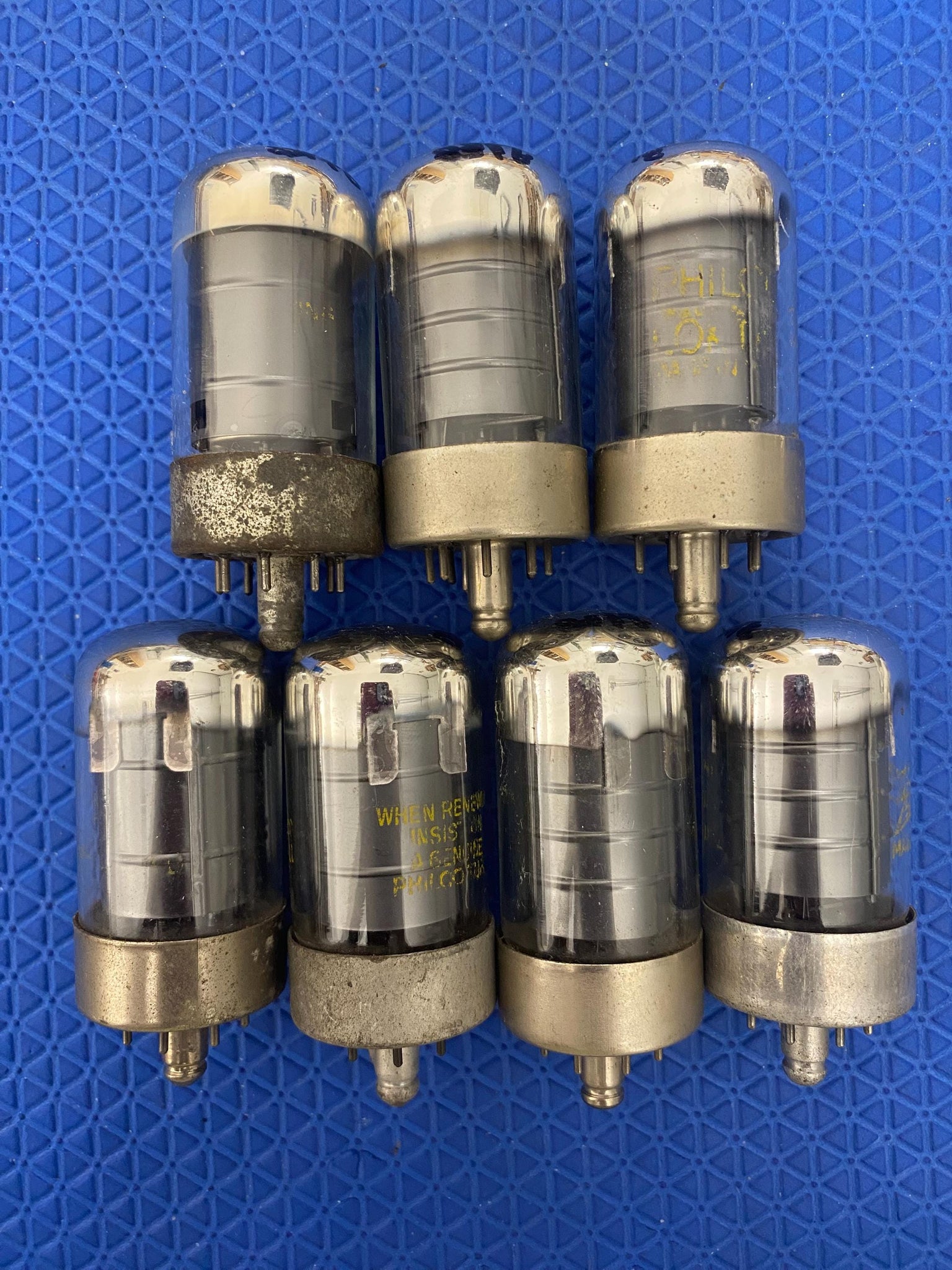1. MOST OF THE TUBES WE SELL ARE OVER 70 YEARS OLD. WE CANNOT GUARANTEE FOR FAILURES AFTER POWER UP AS THERE IS NO WAY TO DETERMINE HOW TUBES WILL INTERACT WITH YOUR ELECTRONICS OR IF THEY WERE MISTREATED IN TRANSIT; NOR IS THERE A WAY TO DETERMINE WHETHER THEY MAY HAVE FATAL FLAWS! WE CAN ONLY TEST FOR THE PARAMETERS MENTIONED ABOVE. WE CANNOT TEST FOR CATASTROPHIC FAILURE. IF A TUBE FAILS AFTER YOU GET IT, IT IS YOUR TUBE THAT HAS FAILED. THERE IS A .1 % CHANCE THIS MIGHT HAPPEN. BE WARNED. NO REFUNDS IN SUCH CASES.