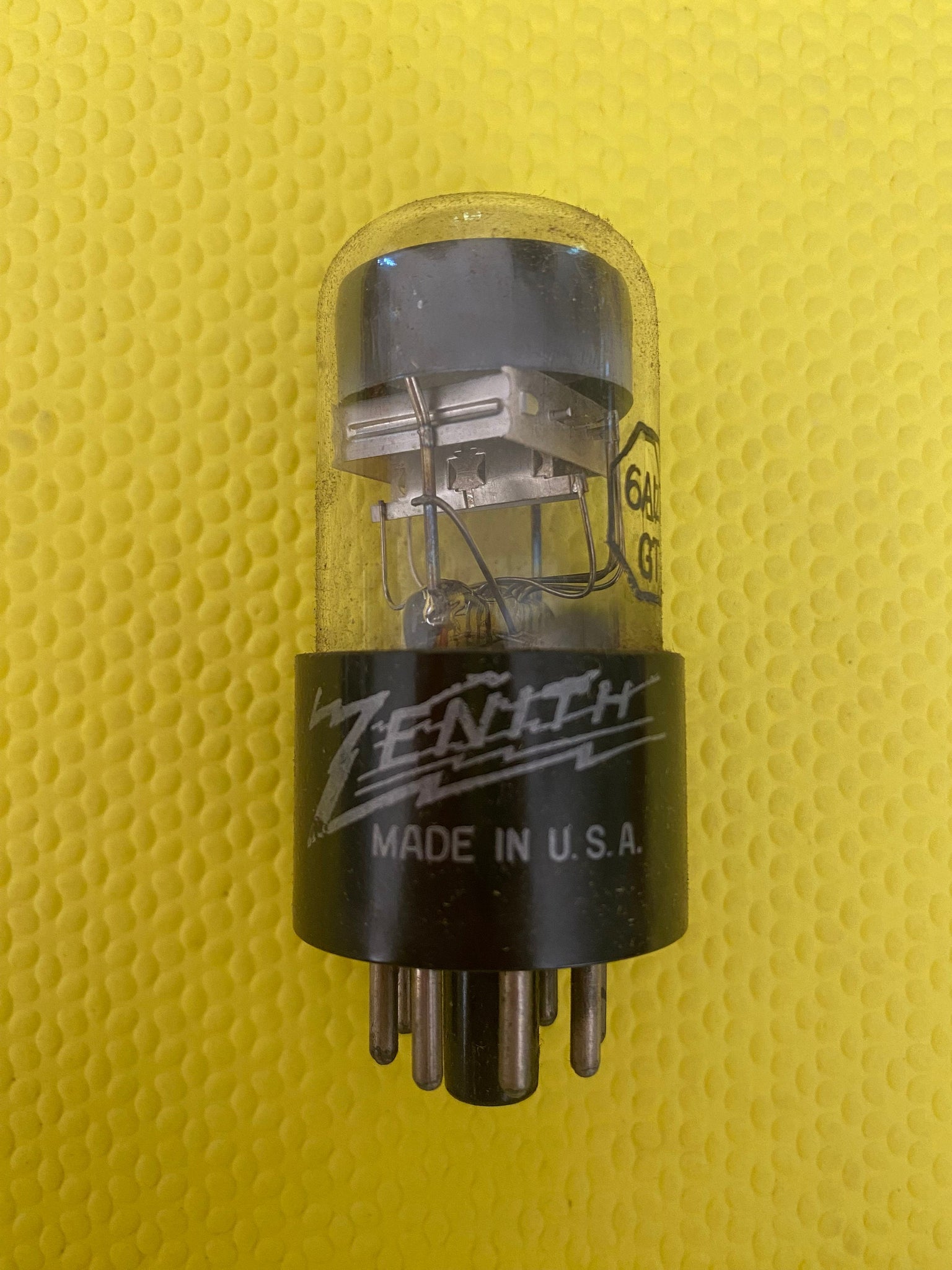 This new old stock, new in box Zenith 6AL7GT tube tested to spec on our Paul Hart-calibrated TV7/U.