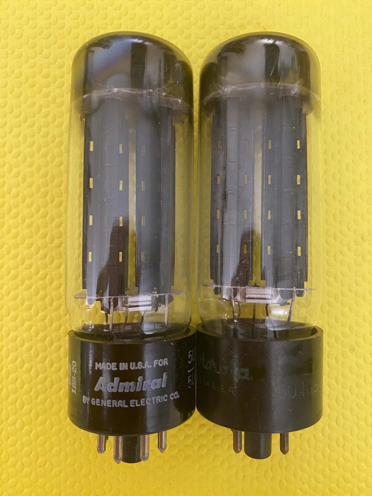 This pair of GE-MANUFACTURED 5U4GA rectifier tubes was tested on our Paul Hart-calibrated tube tester for shorts, gas and transconductance.