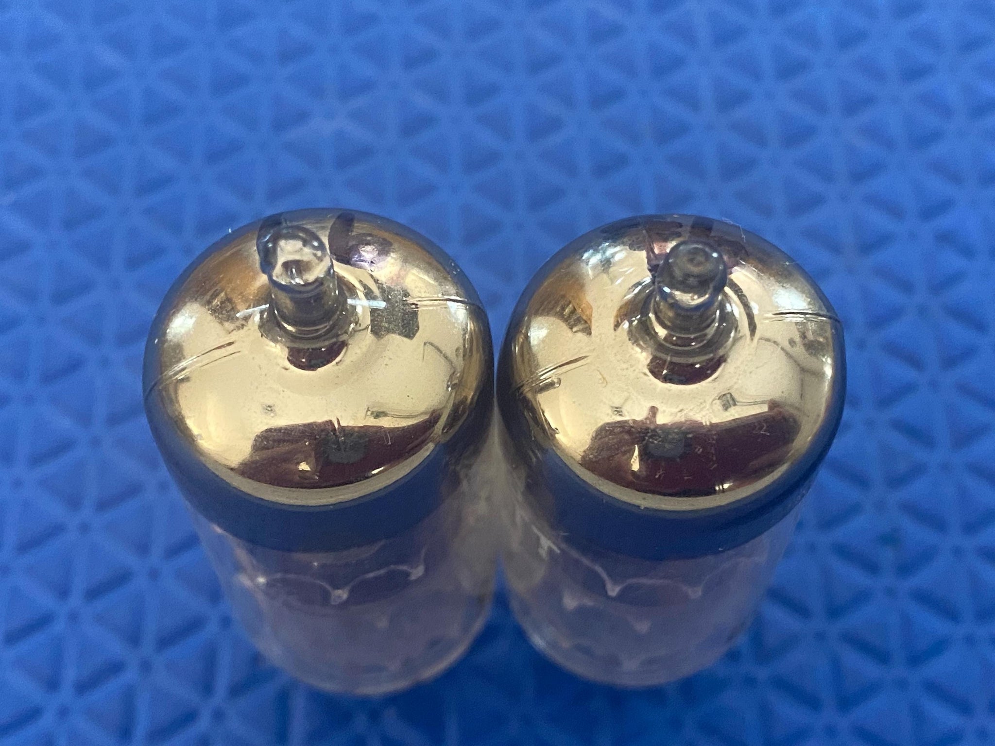 These two Gold Pin 6CM4 EC86 tubes were tested on our Paul Hart-calibrated TV7/U for shorts, gas and transconductance. There were no shorts or gas and they measured as follows: