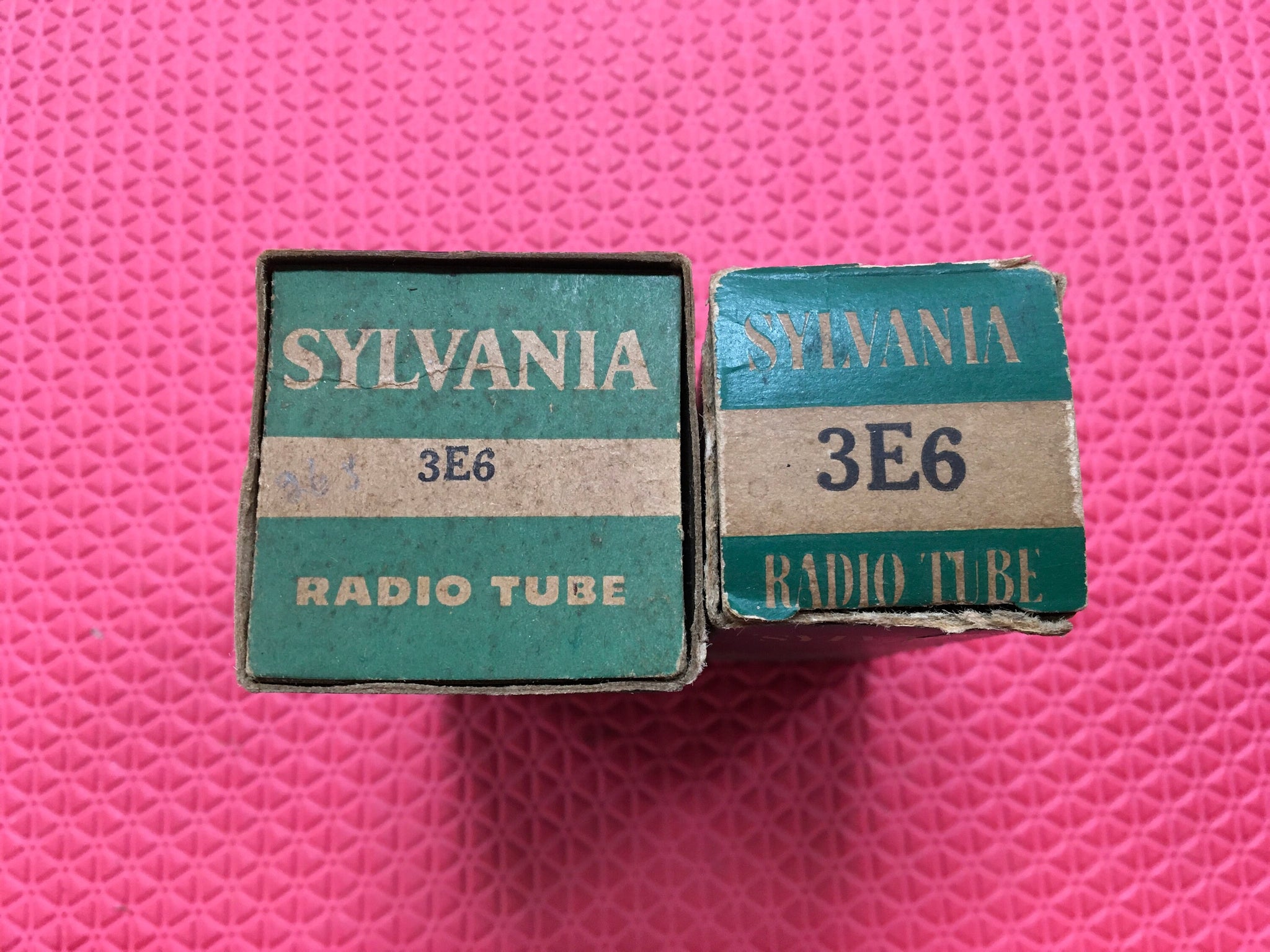 These two new old stock, new in box Sylvania 3E6 tubes tested to spec on our Paul Hart-calibrated TV7/U.