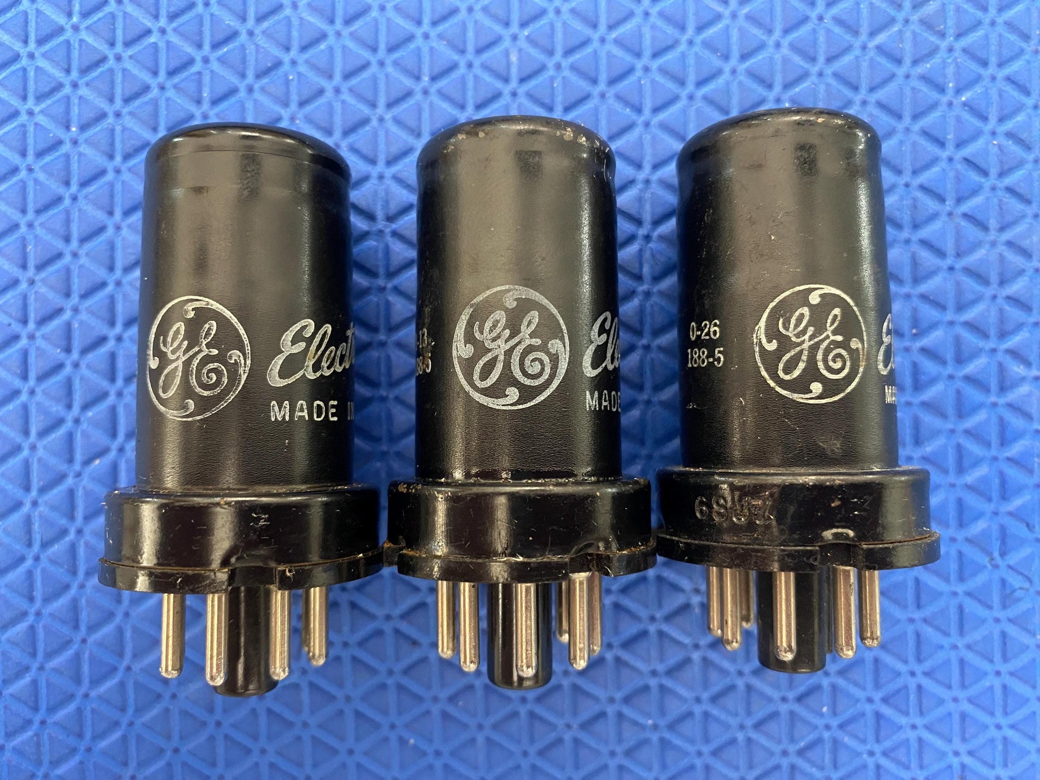 These three GE 6SJ7s were tested on our Paul Hart-calibrated TV7/U for shorts, gas and transconductance. There were no shorts or gas.