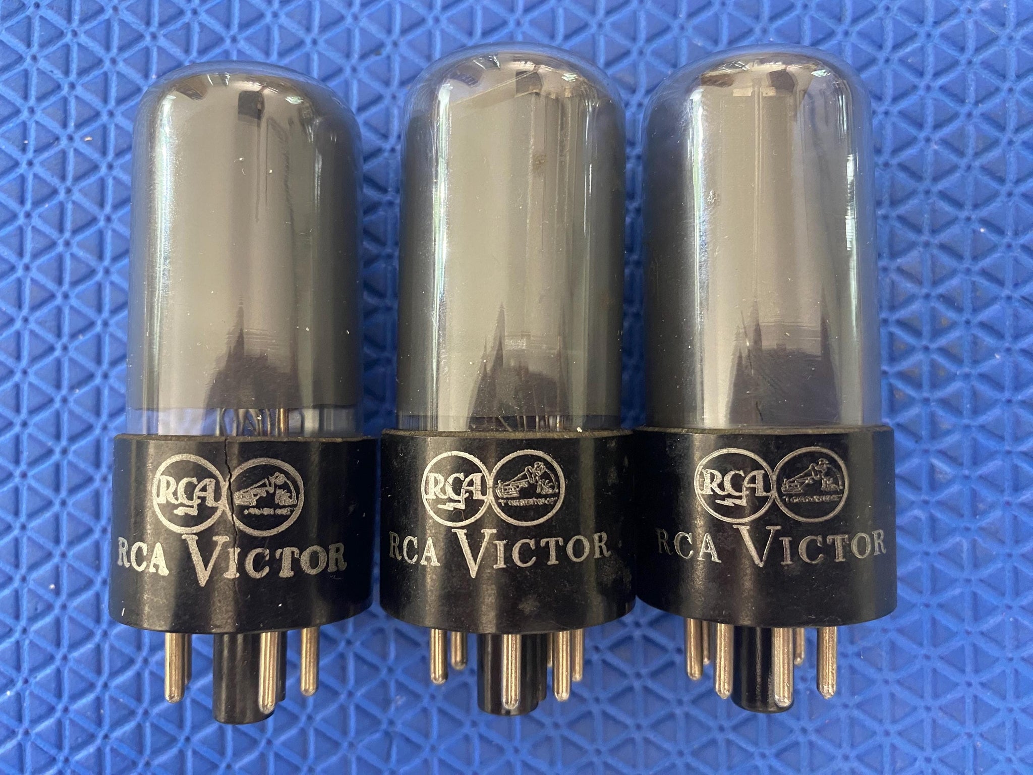 This lot of three RCA-Victor gray glass 50L6GT tubes was tested on our Paul Hart-calibrated TV7/U for shorts, gas and transconductance. There were no shorts or gas.