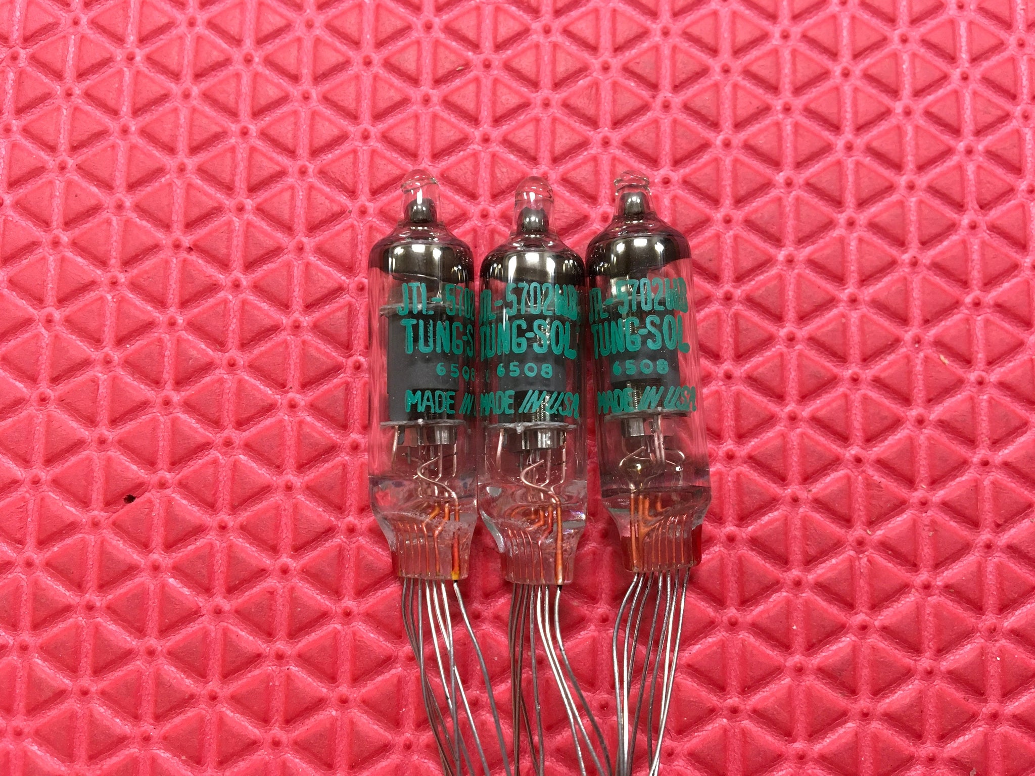 These three new old stock, new in box milspec Tung-Sol JTL-5702WB tubes tested to spec on our Paul Hart-calibrated TV7/U.