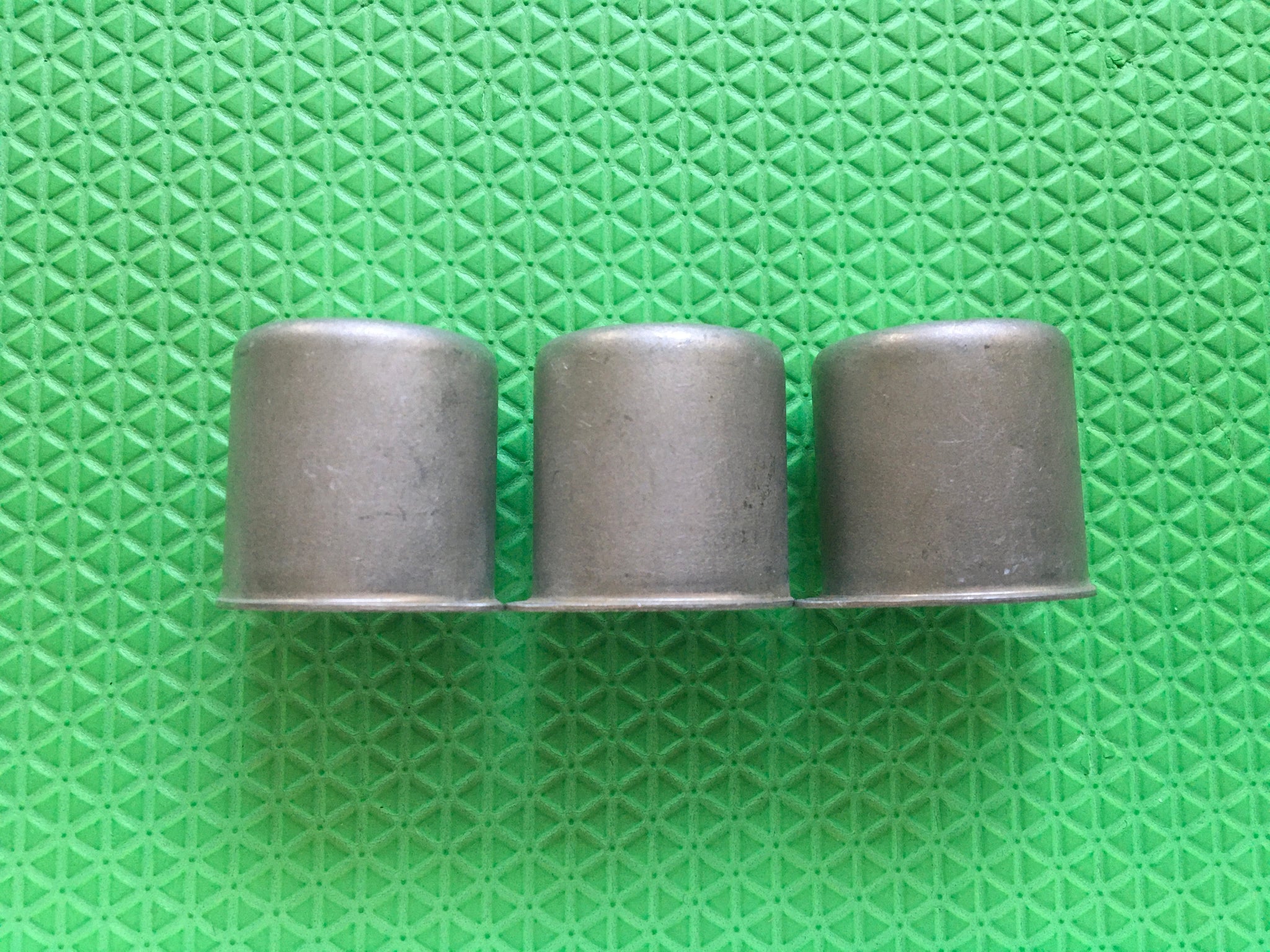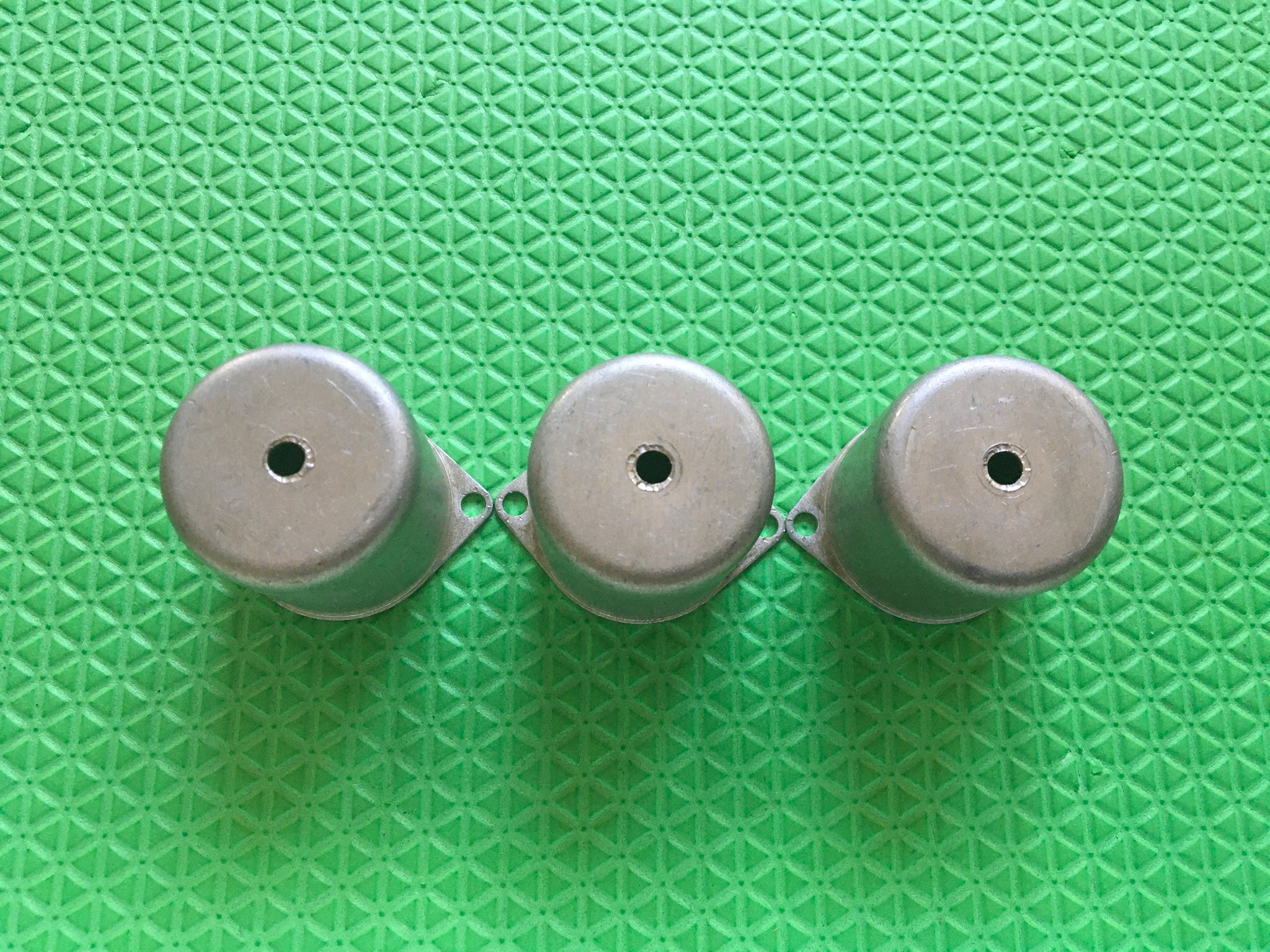 This lot of three tuning coil shields' dimensions are as follows: