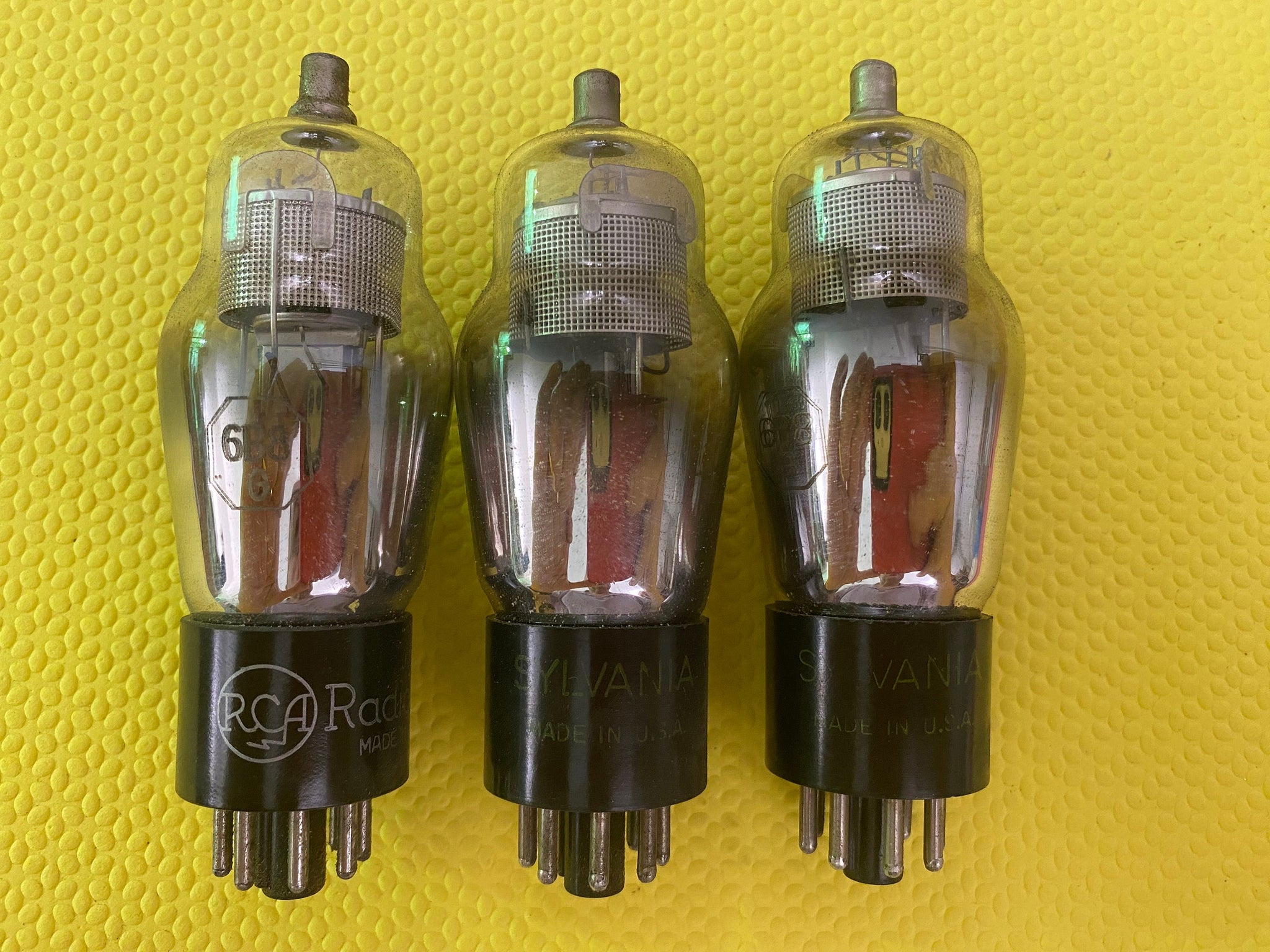 These three new old stock, new in box US-made 6B8G tubes tested to spec on our Paul Hart-calibrated TV7/U.