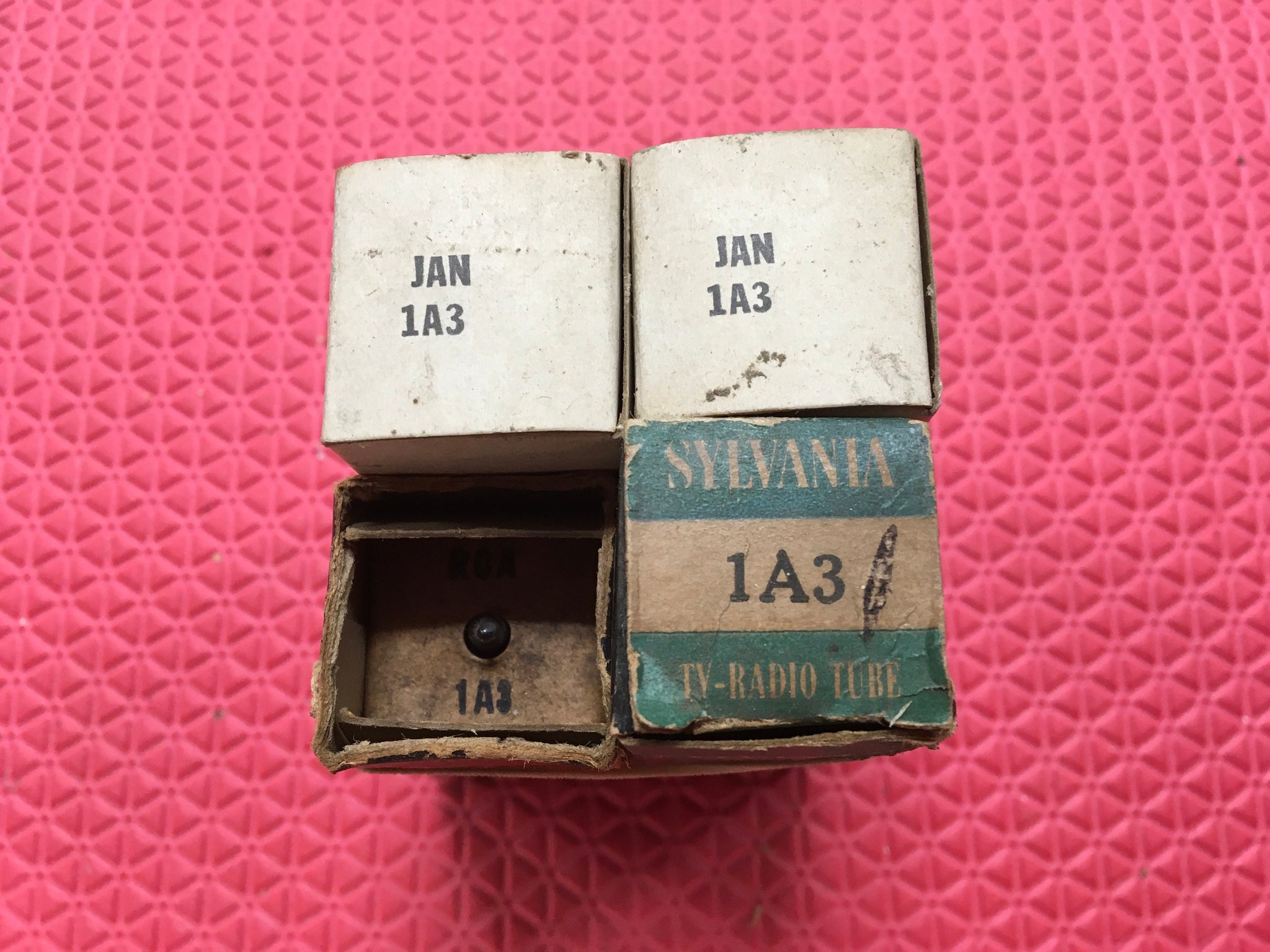 These four US-made 1AX2 tubes tested to spec on our Paul Hart-calibrated TV7/U. Two are milspec and two are civilian.