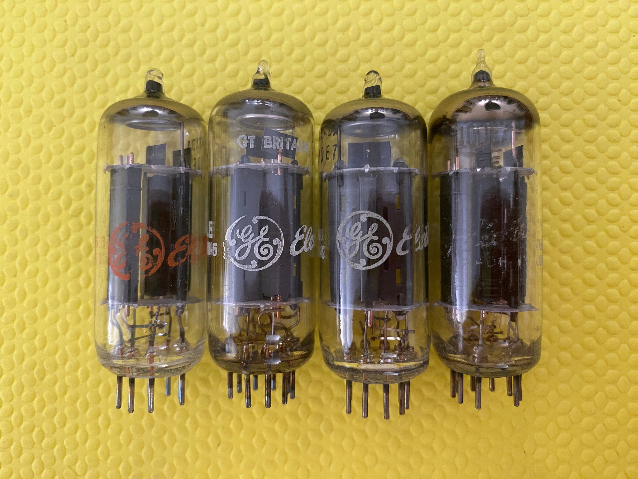 These four new old stock, new in box GE 10DE7 tubes tested to spec on our Paul Hart-calibrated TV7/U.
