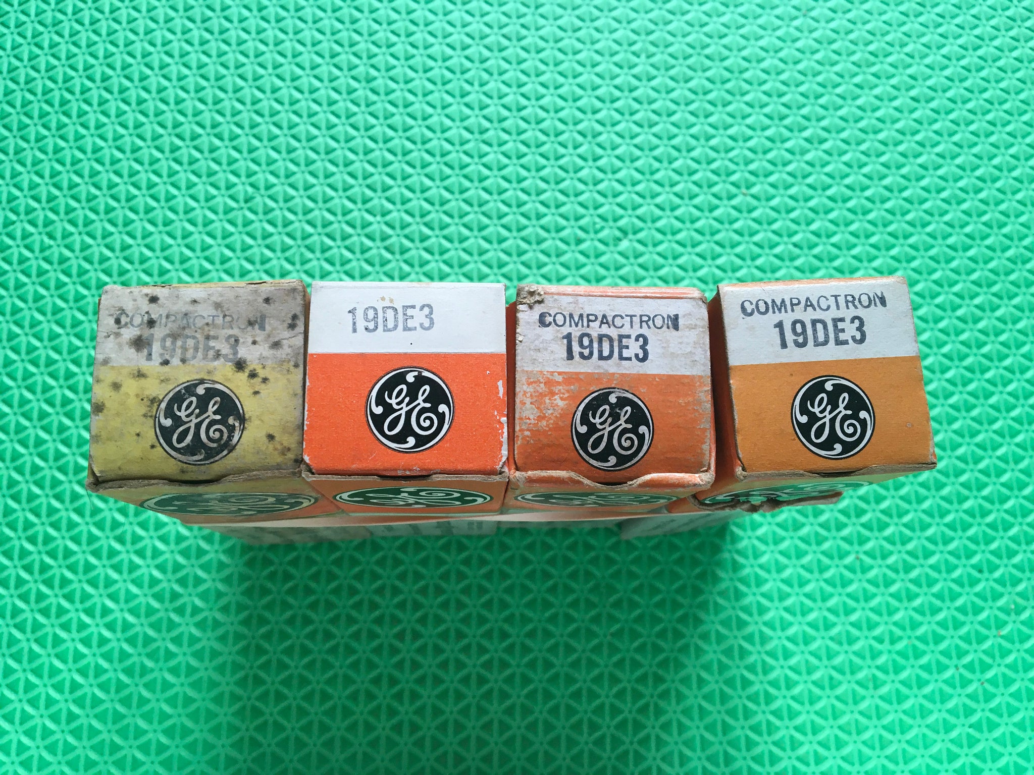 These four GE 19DE3 tubes tested to spec on our Paul Hart-calibrated TV7/U.
