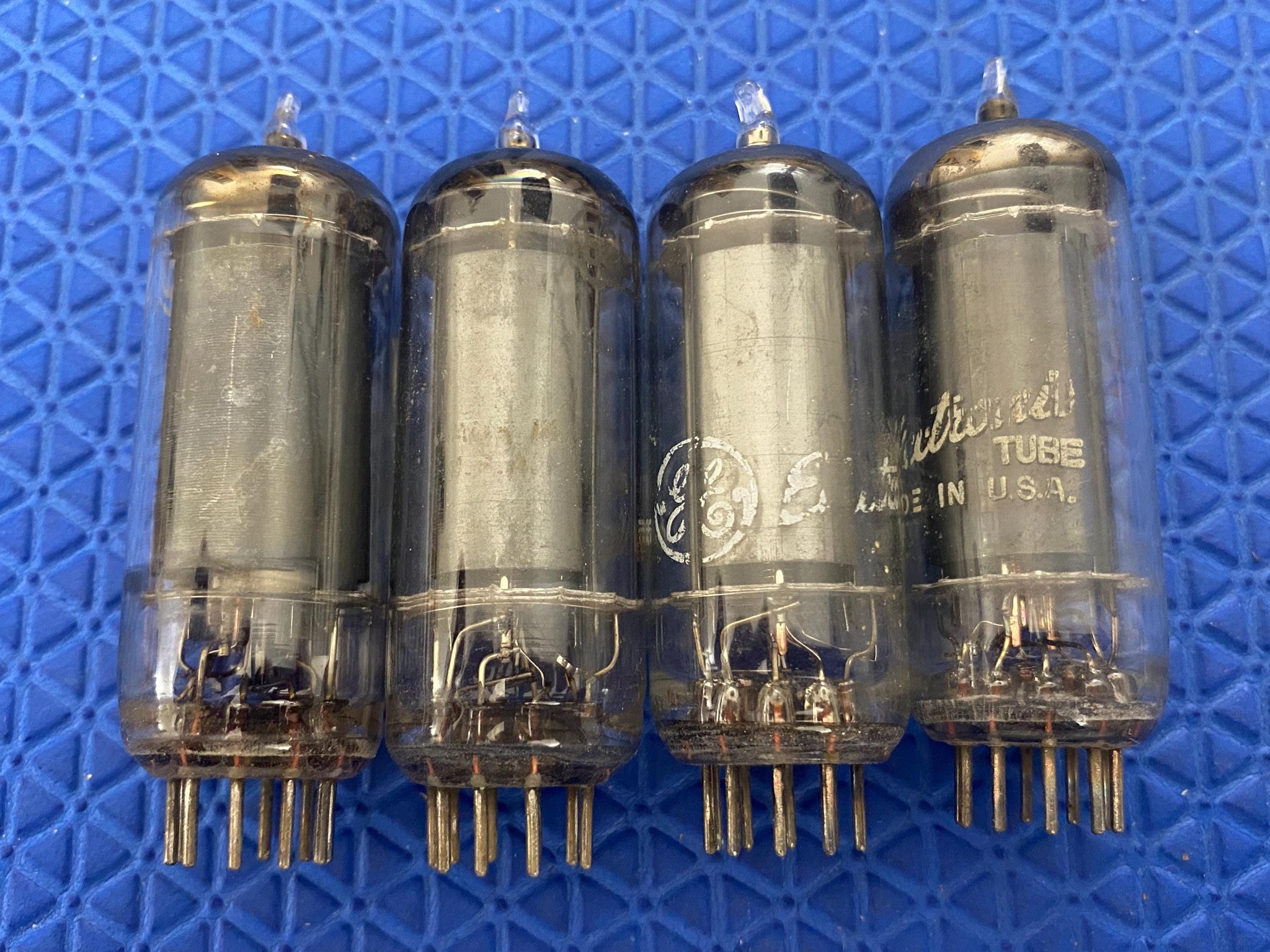 This lot of four of GE black plate 6CL6 tubes was tested on our Paul Hart-calibrated TV7/U for shorts, gas and transconductance. There were no shorts or gas.