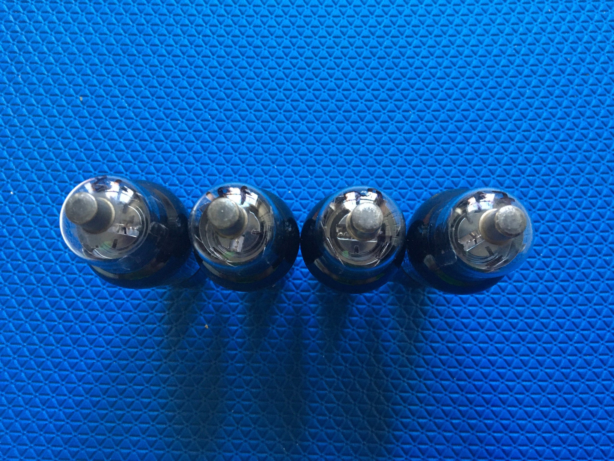 This lot of four black glass Ken-Rad 6D6 tubes was tested on our Jackson 648 Mutual Conductance tester for shorts, gas and transconductance. There were no shorts or gas.