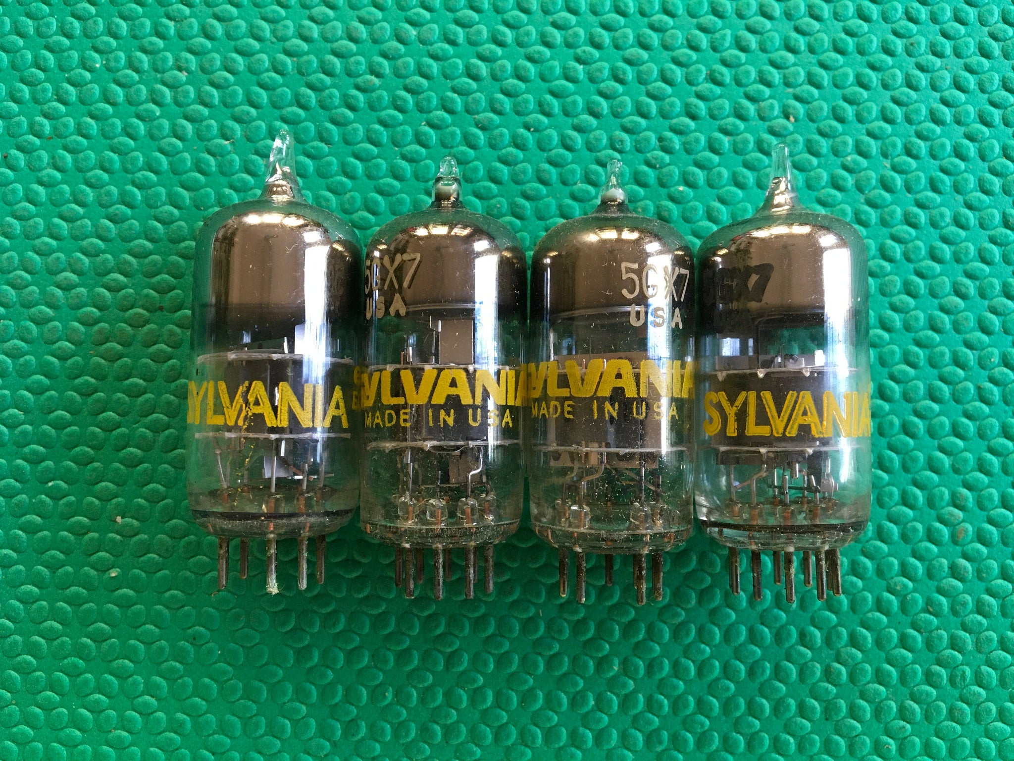 These four new old stock, new in box Sylvania 5GX7 tubes tested to spec on our Paul Hart-calibrated TV7/U.