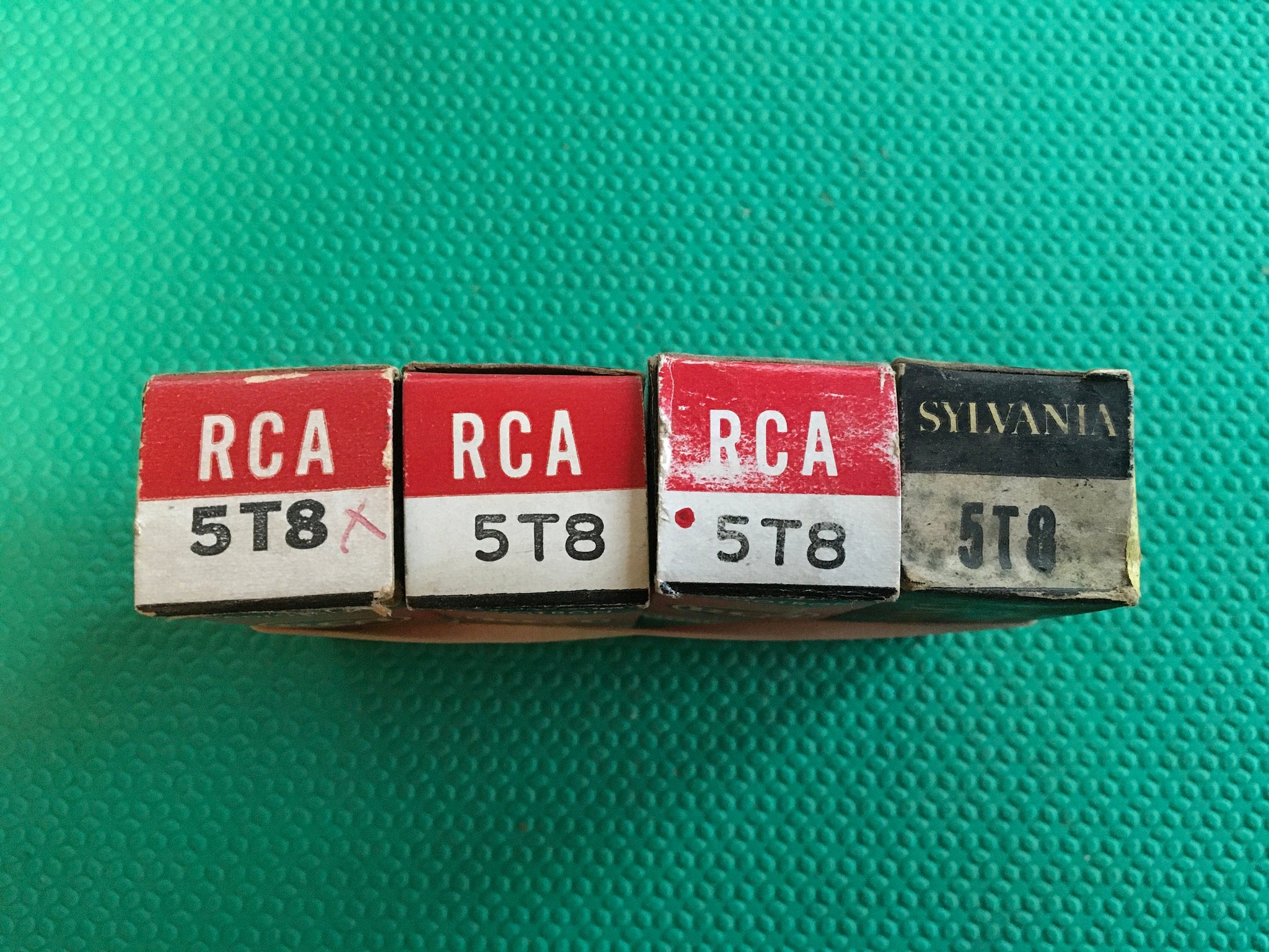 These four new old stock, new in box US-made 5T8 tubes tested to spec on our Paul Hart-calibrated TV7/U.