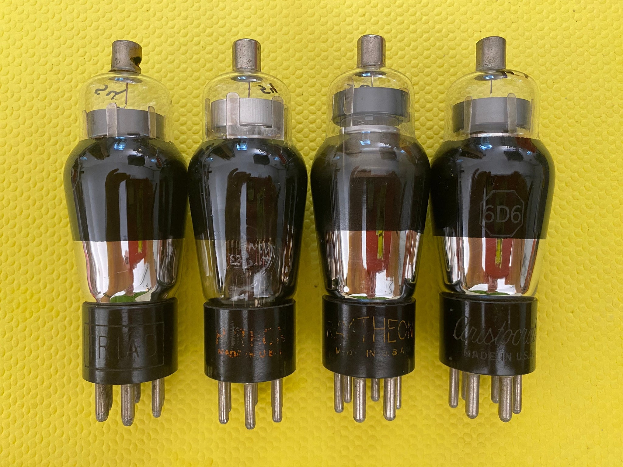4 US-Made 6D6 Vacuum Tubes Valves Black Glass Lot of Four