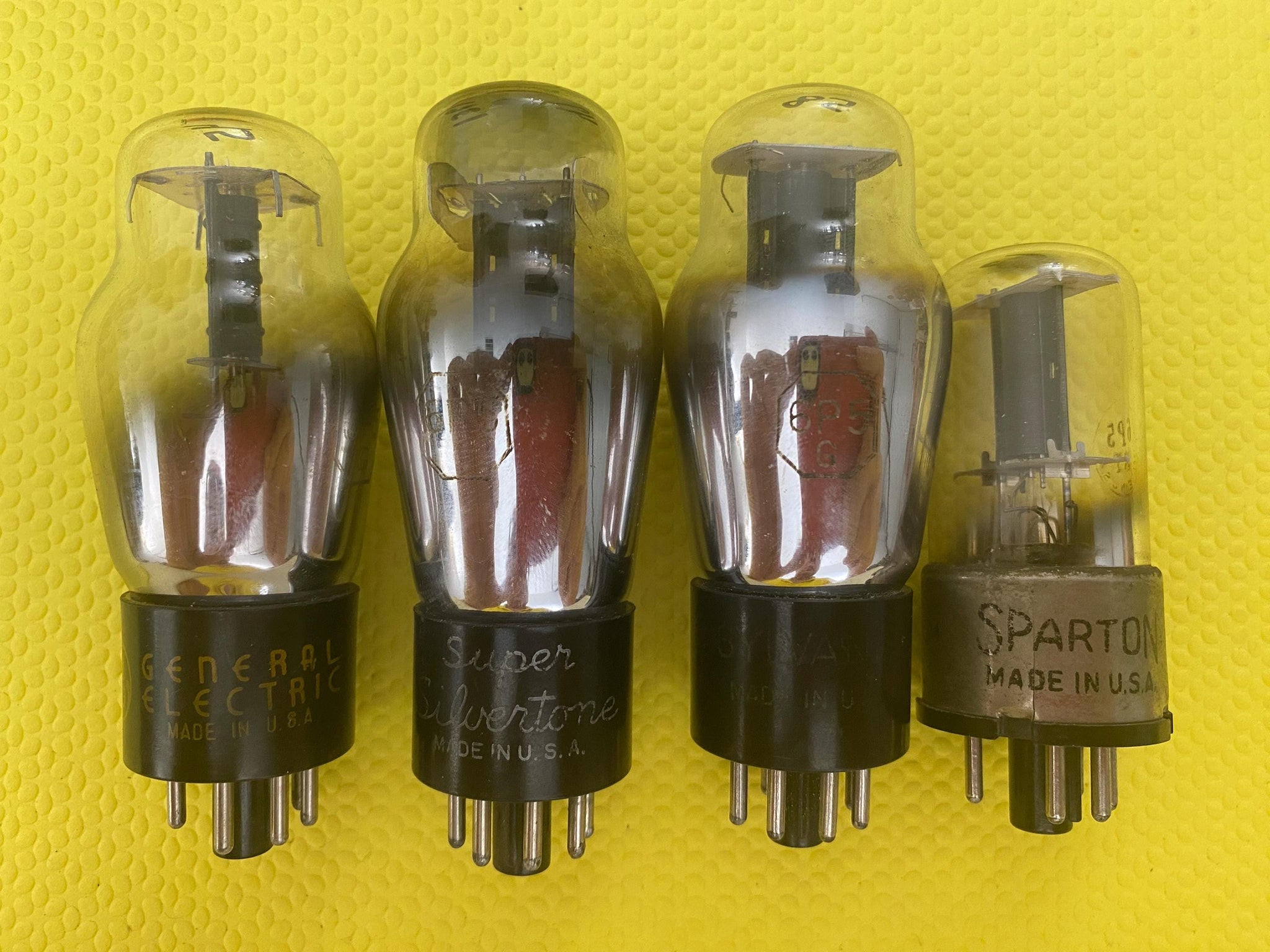 This lot of four new old stock-testing, US-made 6P5G / 6P5GT triodes were tested on our Jackson 648 for shorts, gas and transconductance. There were no shorts or gas.