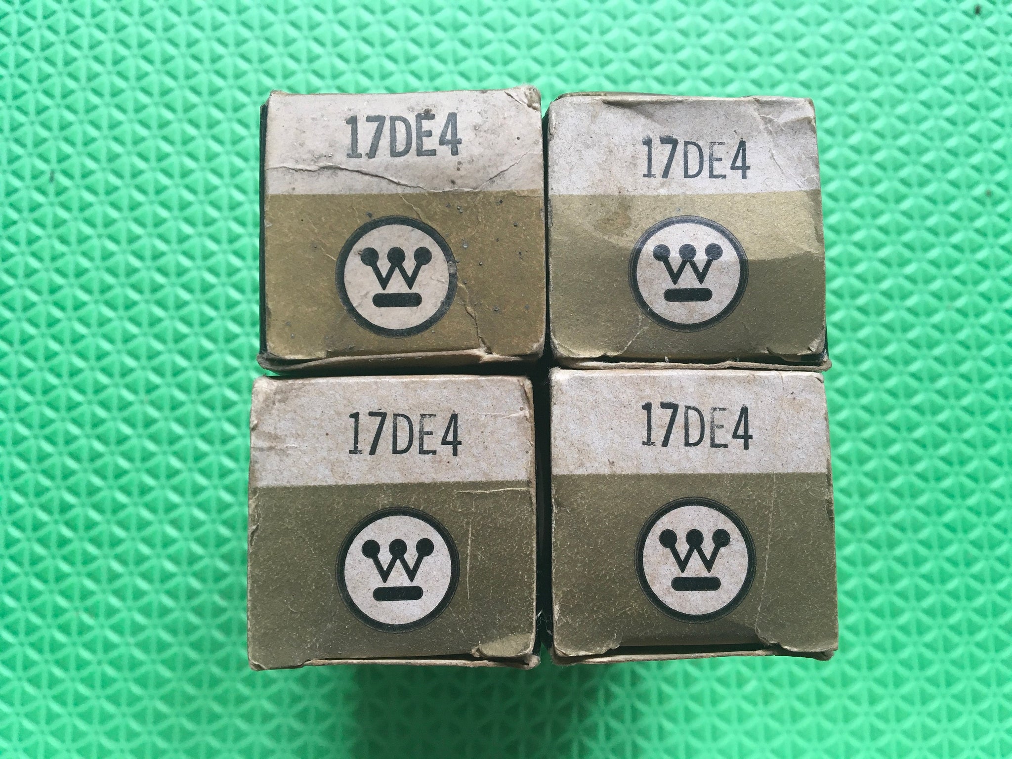 These four new old stock, new in box Westinghouse 17DE4 tubes tested to spec on our Paul Hart-calibrated TV7. Minimum (65%) is 40 and their readings are shown in Picture Two Three.