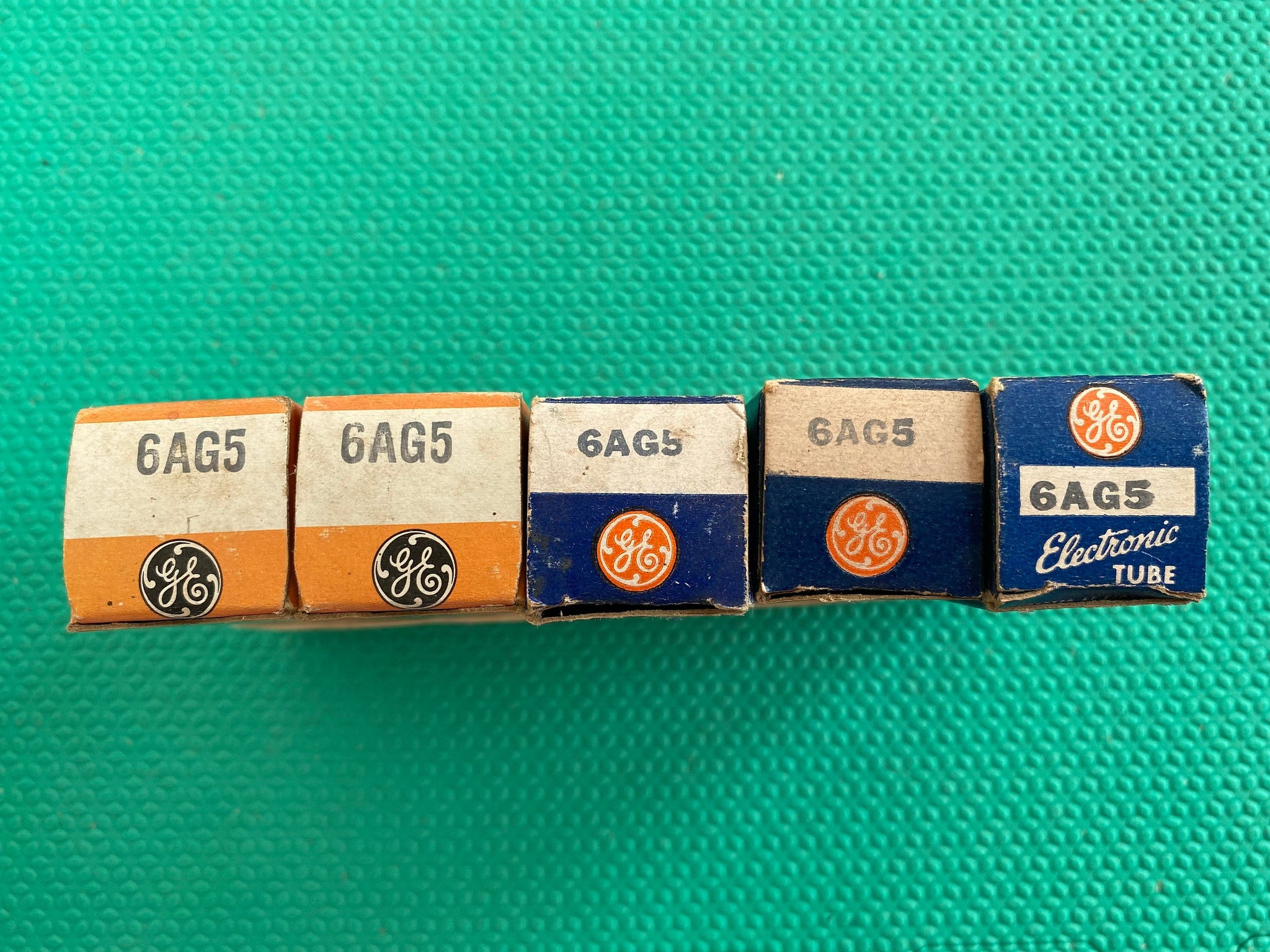 These five new old stock, new in box GE 6AG5 tubes tested to spec on our Paul Hart-calibrated TV7/U.