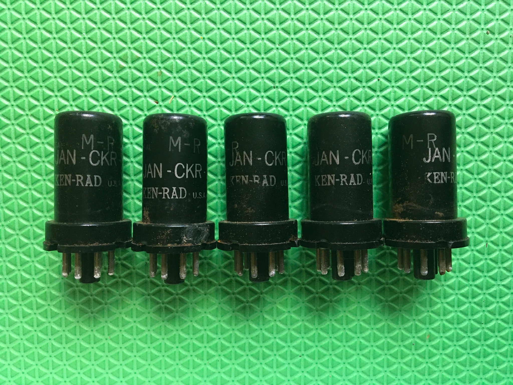 These five milspec Ken-Rad 12SR7 / VT-133 / JAN-CKR-12SR7 tubes tested to spec on our Paul Hart-calibrated TV-7/U.