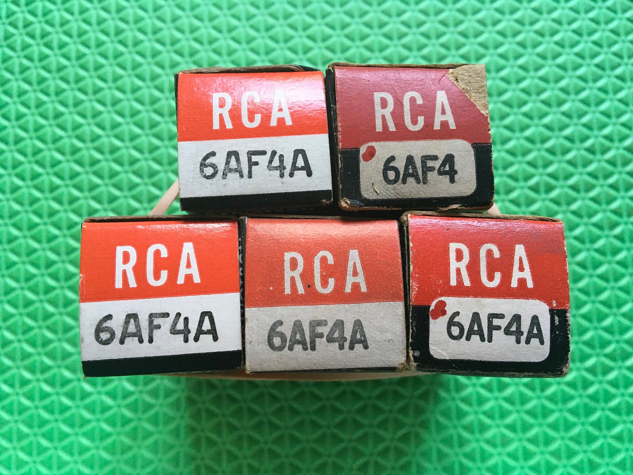 These five new old stock, new in box RCA 6AF4A tubes tested to spec on our Paul Hart-calibrated TV7/U.