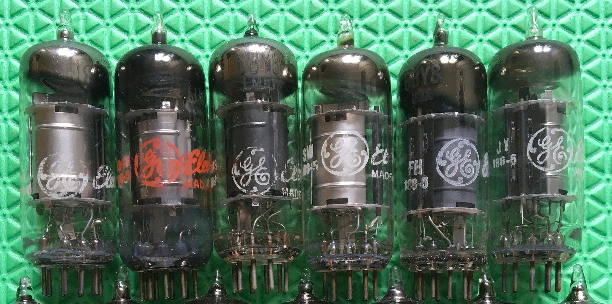 These six new old stock, new in box GE 6BY8 tubes tested to spec on our Paul Hart-calibrated TV7/U. Although eight boxes are shown, only six tubes are available. Etsy's crude photo-editing software is the reason.