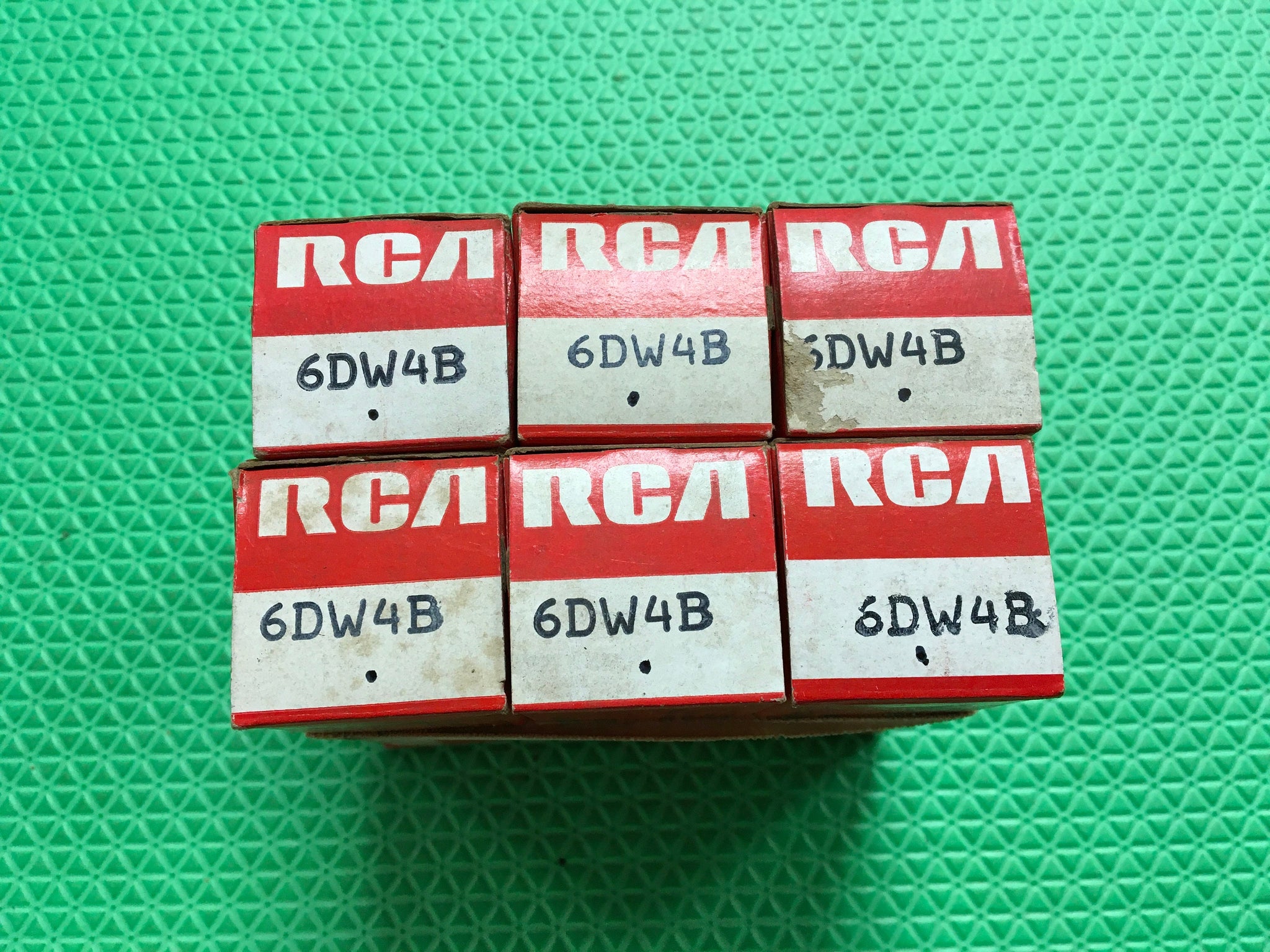 This lot of six new old stock, new in box RCA 6DW4B tubes tested to spec on our Paul Hart-calibrated TV7.
