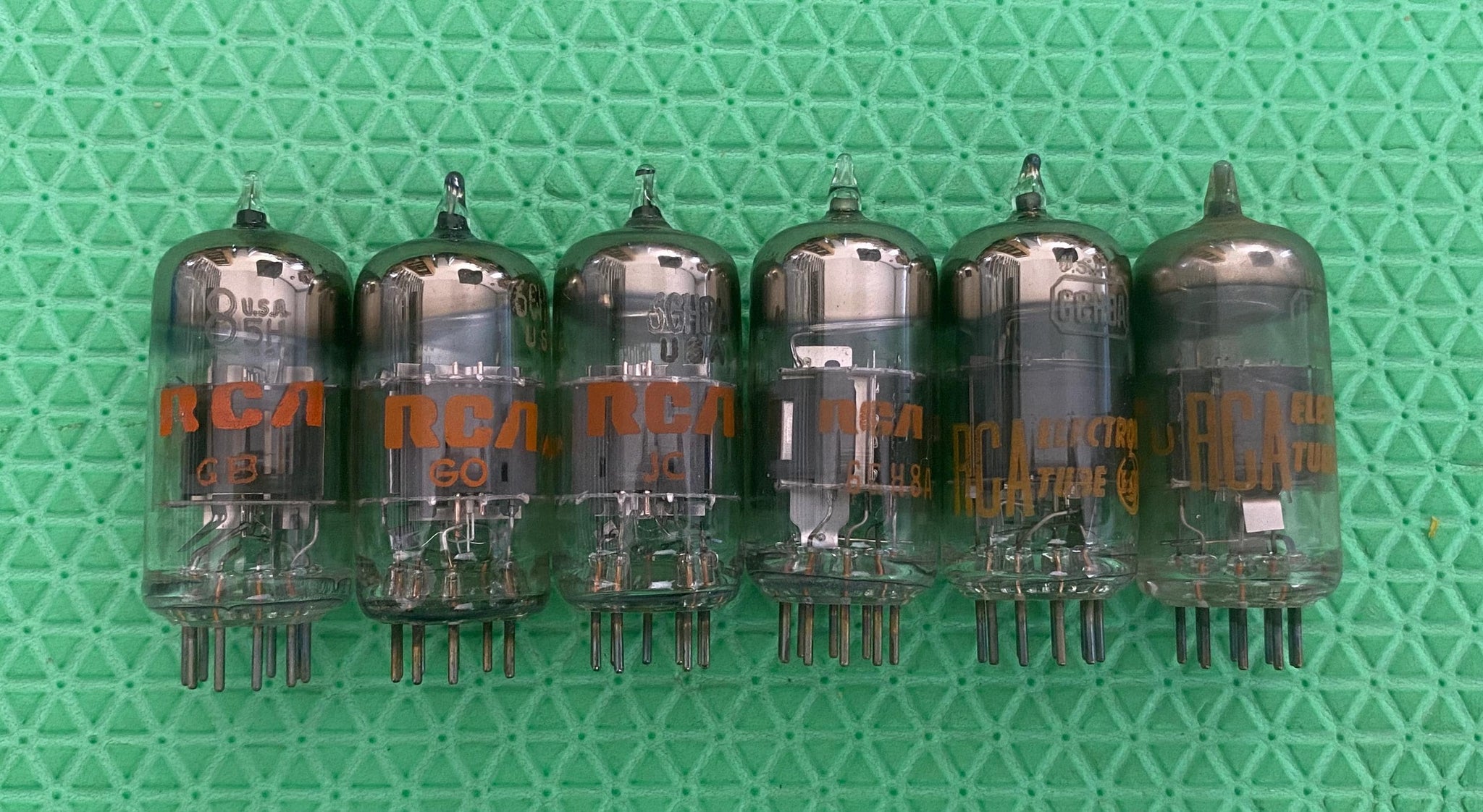This lot of six RCA 6GH8A tubes tested to spec on our Paul Hart-calibrated TV7/U.